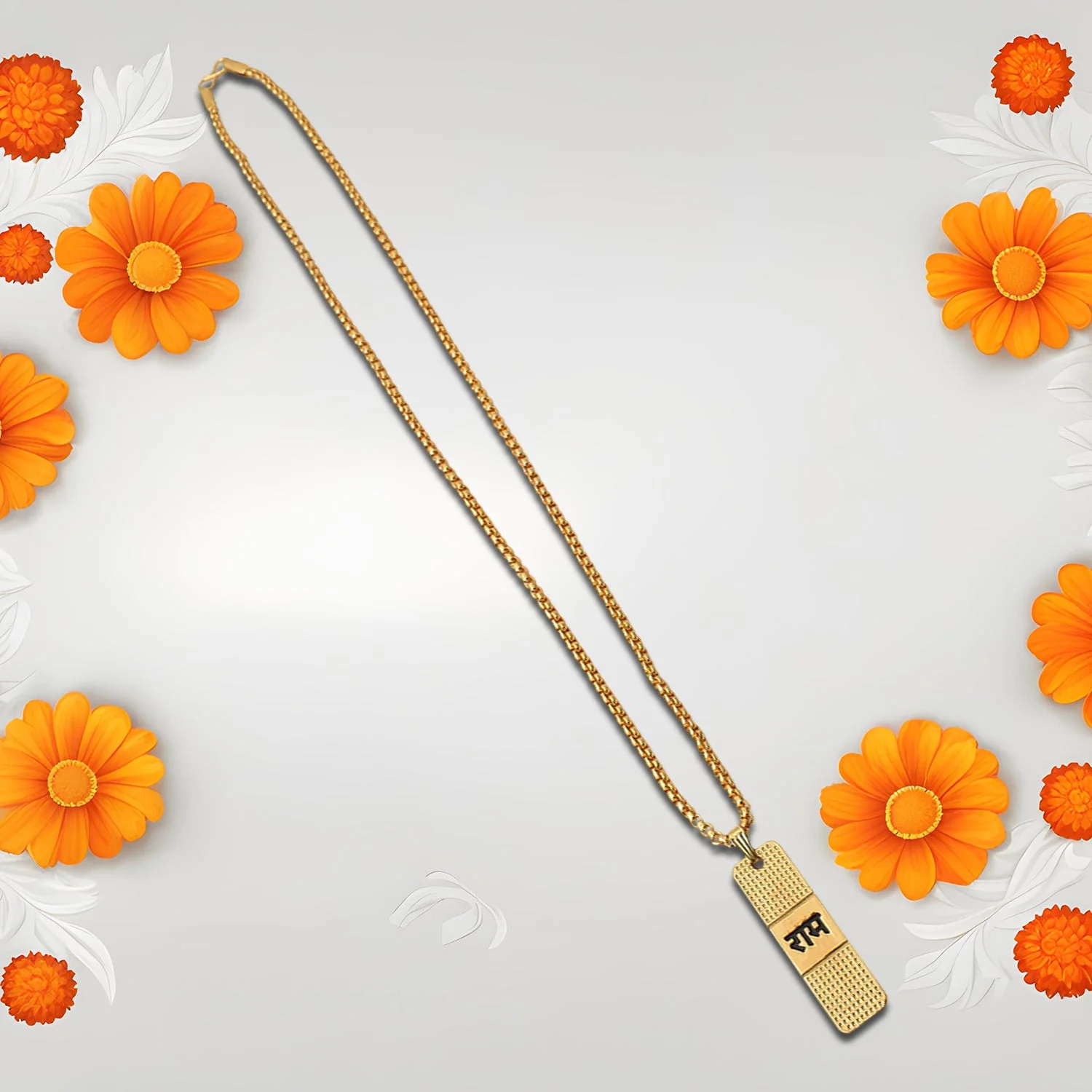 Jewar Mandi Ram Naam Locket With Chain Gold Plated Shri Ram Engraved Ram Name Letter Pendant Daily Use Jewelry for Men-Women & Girls-Boys.