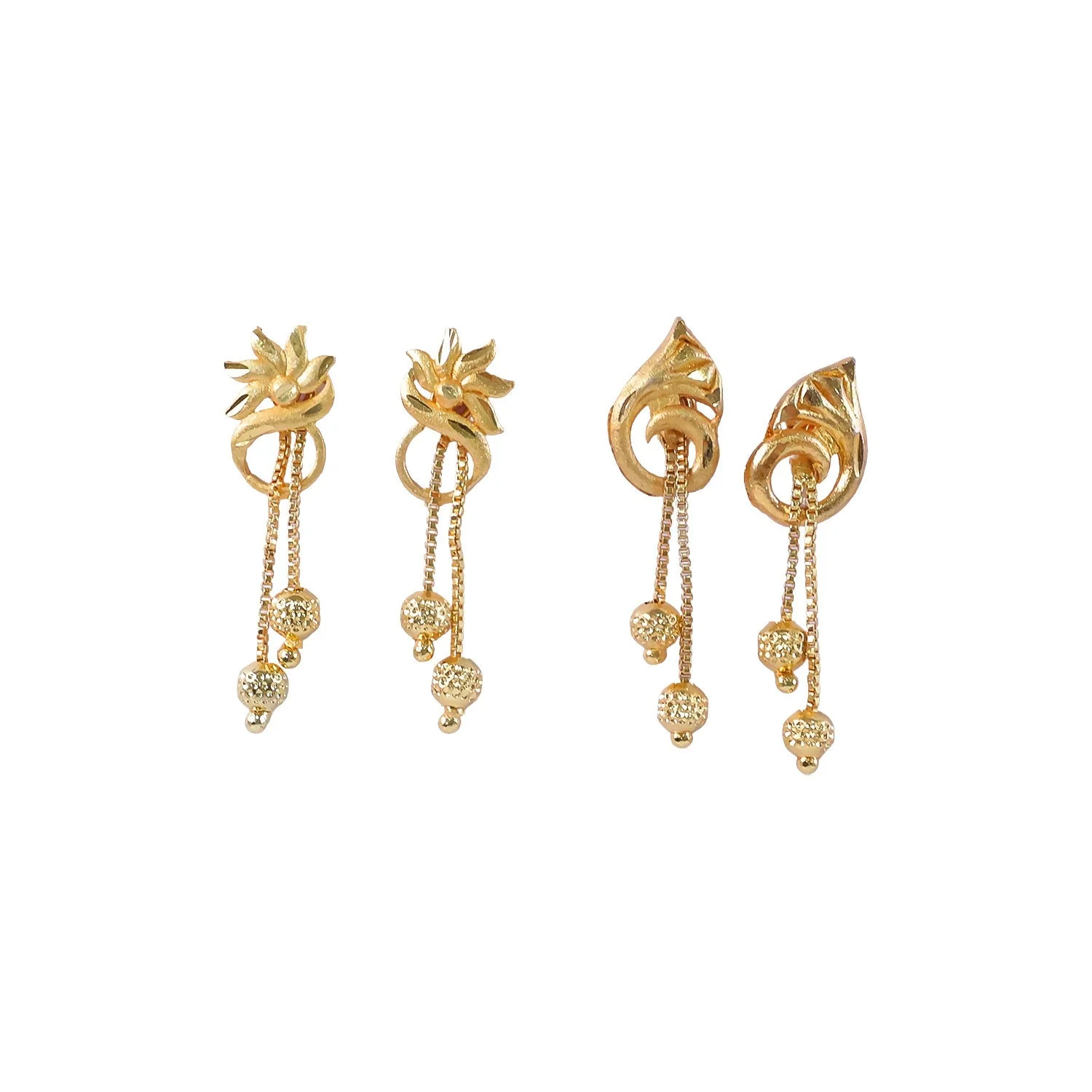 Add a touch of elegance and charm to your jewelry collection with these beautifully designed floral-inspired gold drop earrings. Featuring a delicate flower and leaf motif at the top, these earrings capture the beauty of nature with a graceful and artistic design. The carefully crafted petals and curved details create a sophisticated look that blends classic style with modern elegance.