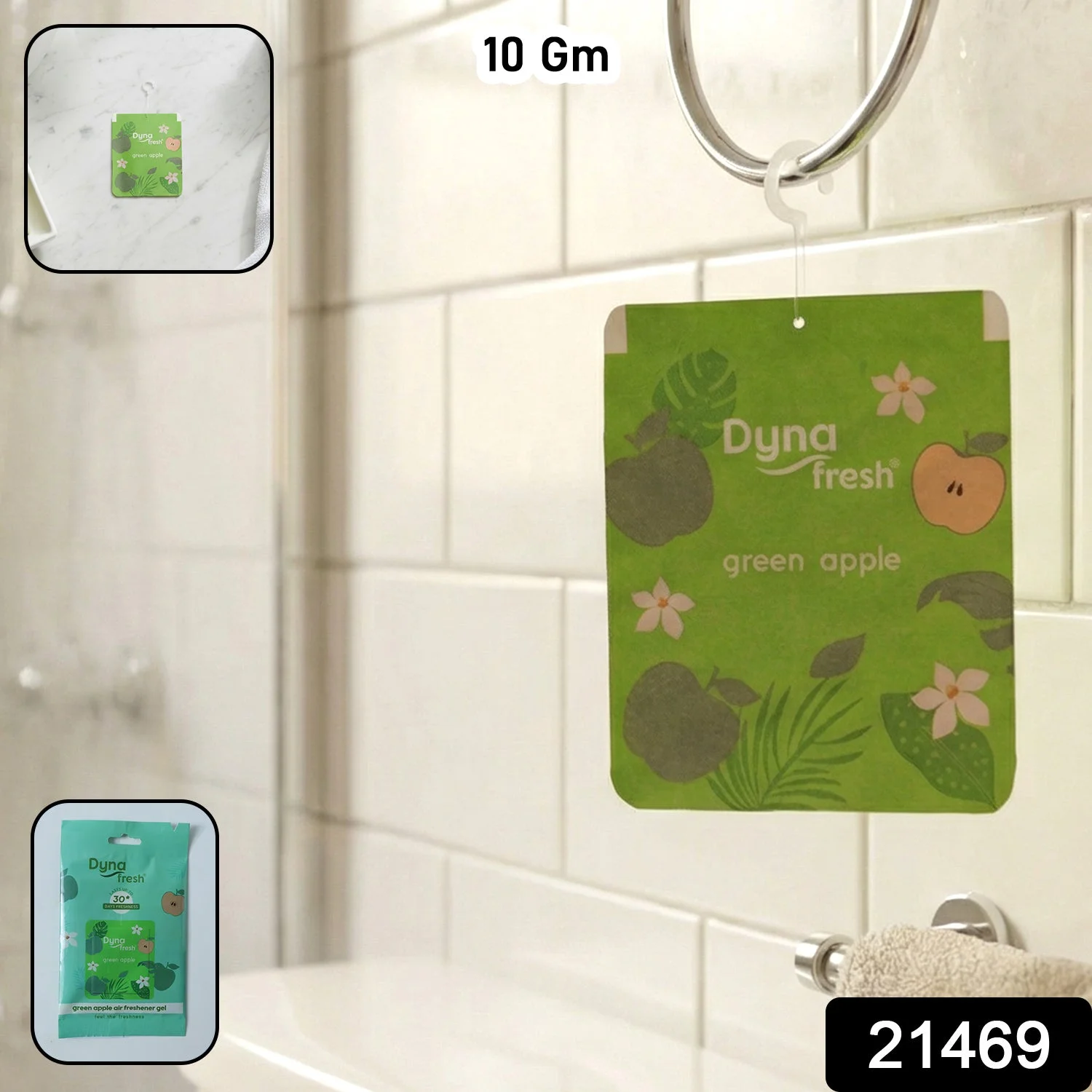 green apple hanging air freshener, apple gel air freshener, 10gm gel air freshener, long lasting fruity fragrance, bathroom air freshener, wardrobe air freshener, car air freshener gel, small indoor space freshener, paper gel air freshener, single piece air freshener, compact hanging air freshener, home odor eliminator, fruity scent air freshener, portable air freshener gel, hanging deodorizer for rooms, office gel air freshener, restroom air freshener, fresh apple scent gel, small space hanging freshener