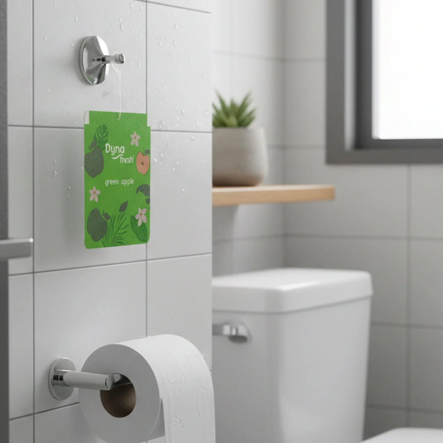 Keep your surroundings fresh and lively with the Green Apple Hanging Air Freshener. Infused with a crisp and fruity green apple fragrance, this compact paper freshener helps reduce unpleasant odors and create a clean, refreshing environment. Its lightweight hanging design allows easy placement in bathrooms, wardrobes, cars, and other small enclosed areas without occupying extra space. The pleasant fruity aroma delivers a revitalizing scent that enhances the atmosphere throughout the day. Ideal for regular use, it offers a simple and effective solution for maintaining everyday freshness.
