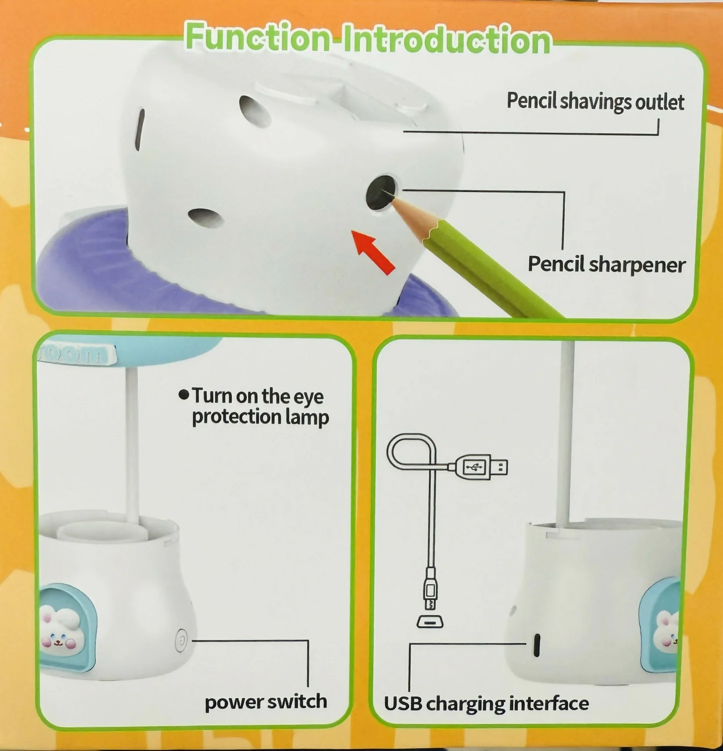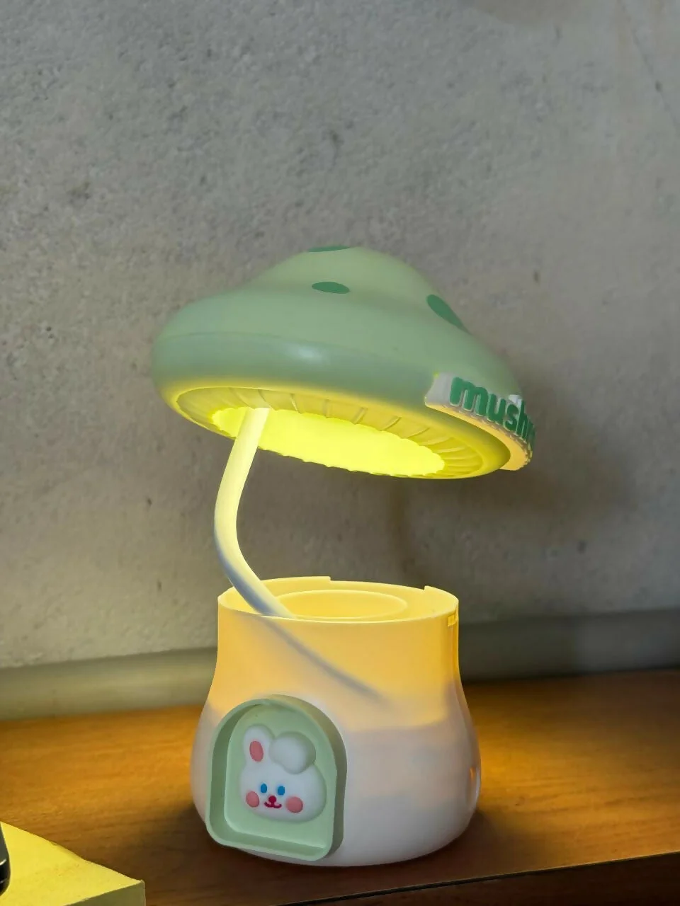 Add charm and functionality to your study table with this adorable mushroom-shaped table lamp. Designed with a soft glowing light, built-in pencil sharpener, and storage space, it is perfect for kids’ study desks and bedrooms. The flexible stem allows easy adjustment of light direction, while the USB charging interface ensures convenient use. A cute and practical addition for school-going children and gifting occasions.