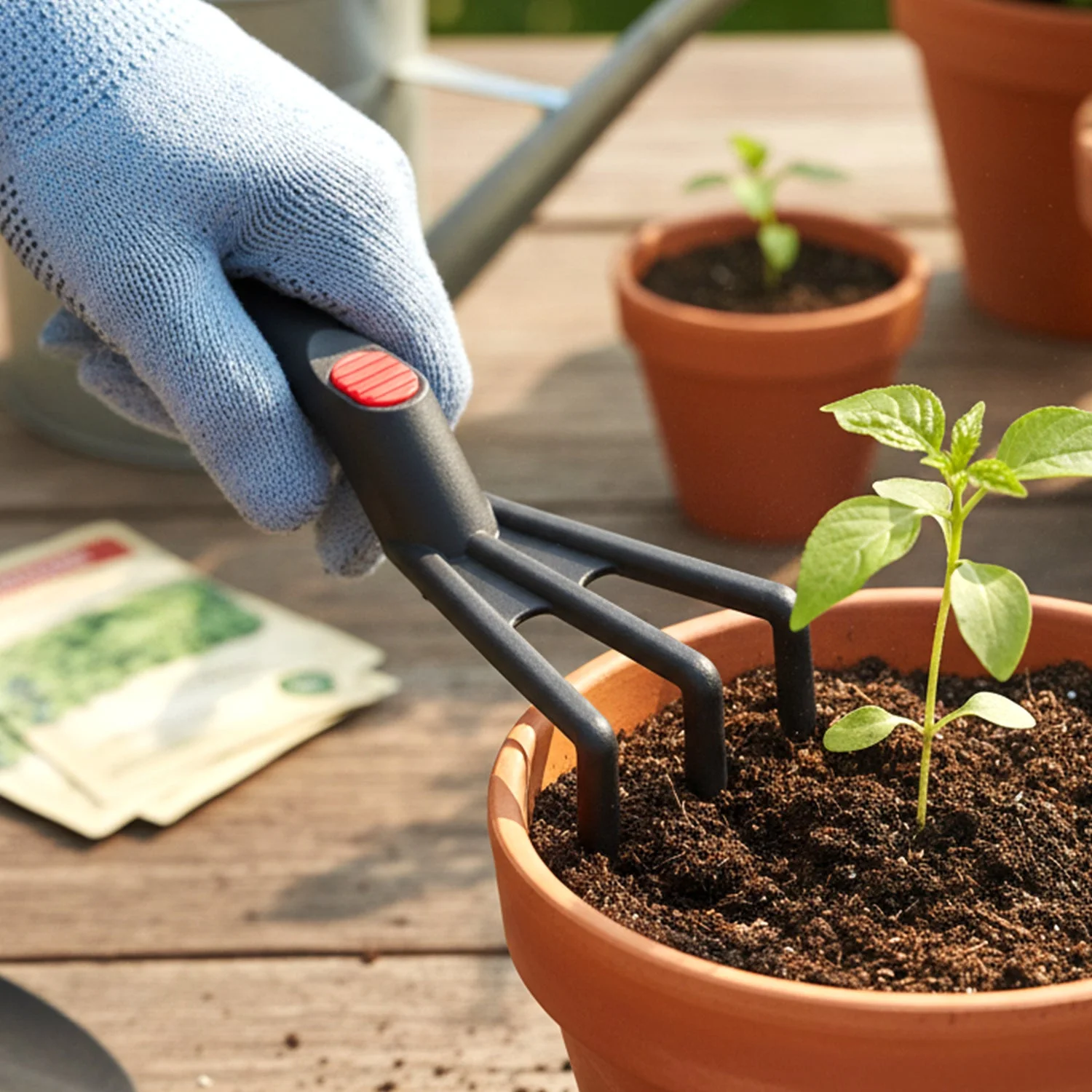 This handheld plastic garden cultivator rake is designed to help with basic gardening tasks such as loosening soil, removing small weeds, and preparing soil for planting. The multi-prong design allows easy aeration of soil around plants, helping improve plant growth and root health. Its lightweight plastic construction makes it easy to handle during everyday gardening activities. The ergonomic handle offers a comfortable grip, allowing better control while working in flower pots, plant containers, and garden beds. Ideal for home gardeners, this tool helps maintain soil health and support regular plant care.