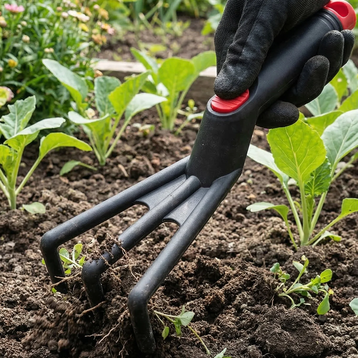• Lightweight plastic hand cultivator designed for gardening tasks