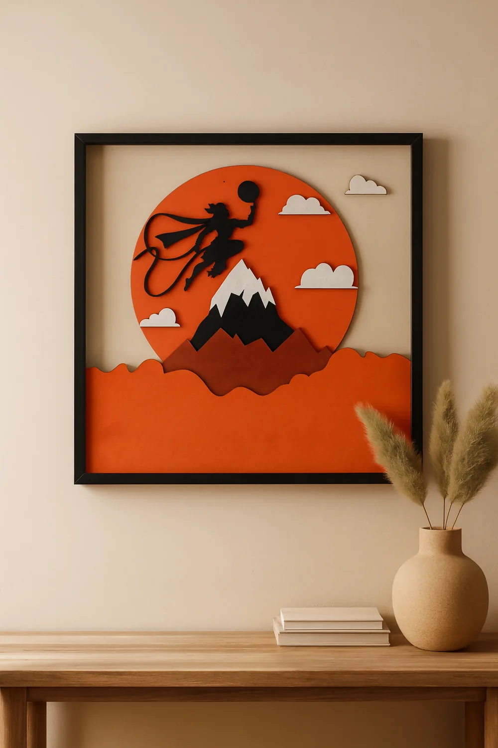 Made using premium layered wood, the artwork features a bold and detailed 3D depiction of Hanumanji, representing power, loyalty, and protection. Each layer is precision and hand-assembled by skilled artisans, adding depth, texture, and a temple-like aesthetic.