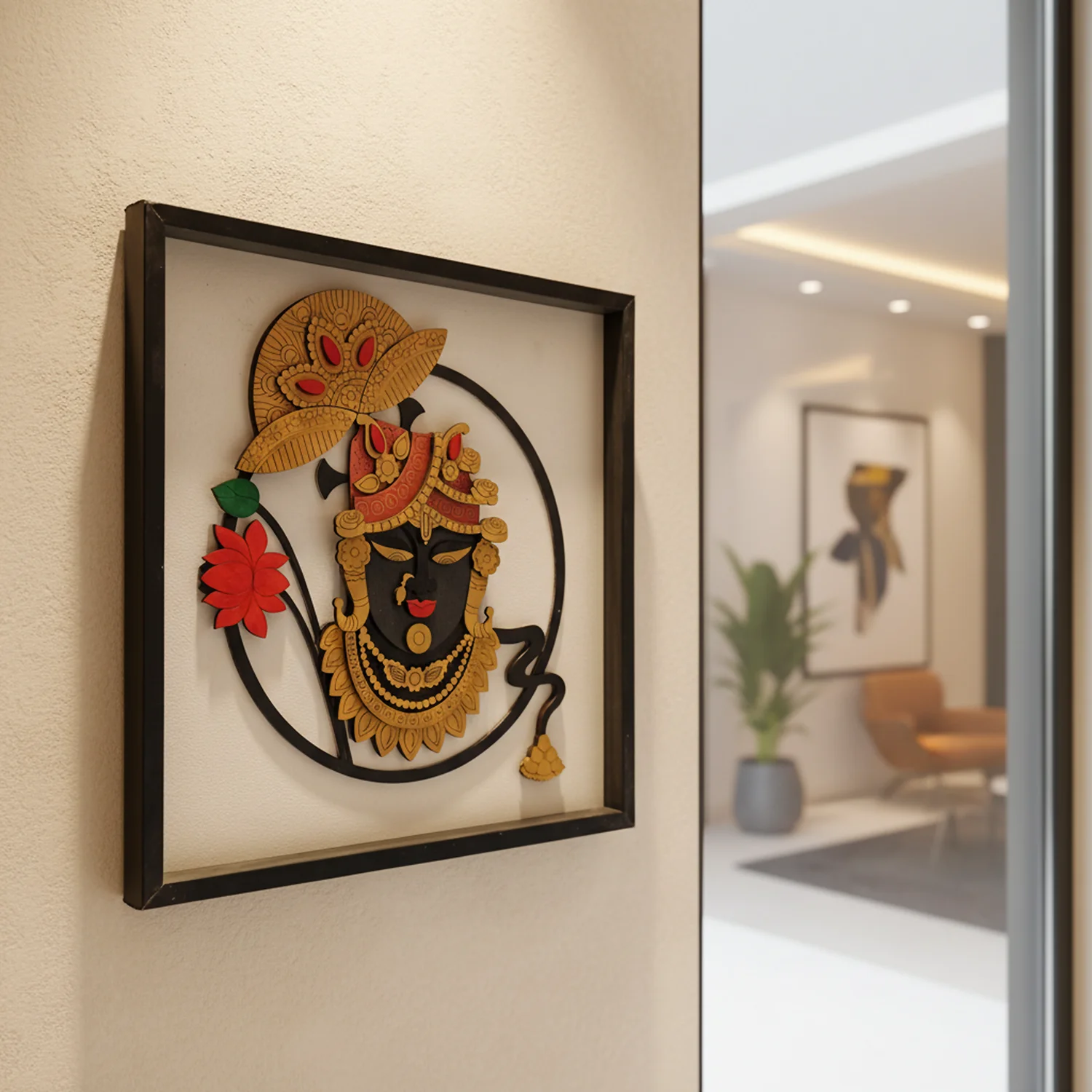 Perfect for devotees and art lovers alike, this Shreenathji wall decor brings an aura of peace, devotion, and divine positivity into any home.