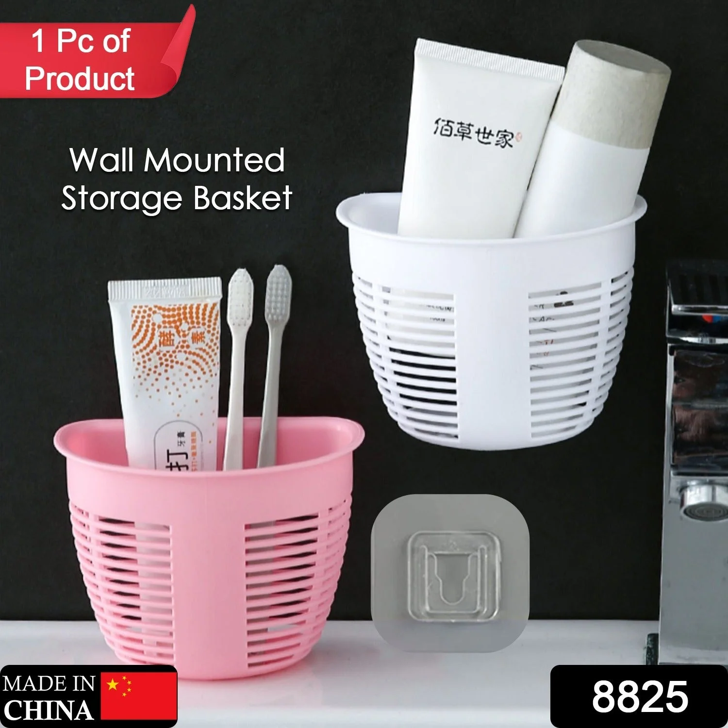 8825 Hanging Plastic Storage Basket, Adhesive Wall Mounted Organizer Box Make Up Holder Shelf Bathroom Wall Basket Punch Free Drain Basket for Kitchen Bathroom, Wall Type Storage Basket (1 Pc)