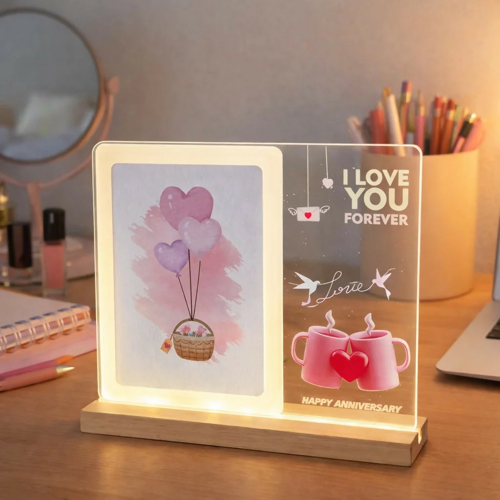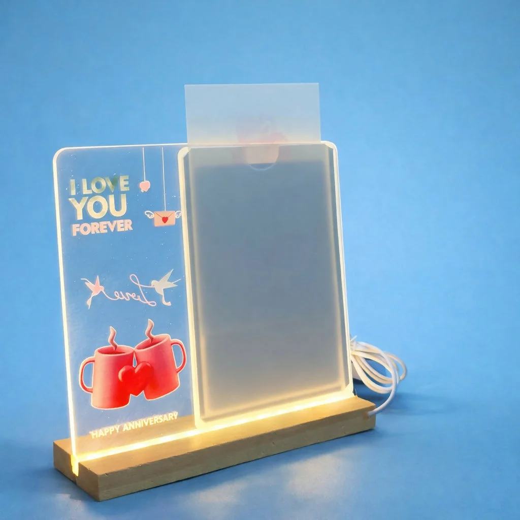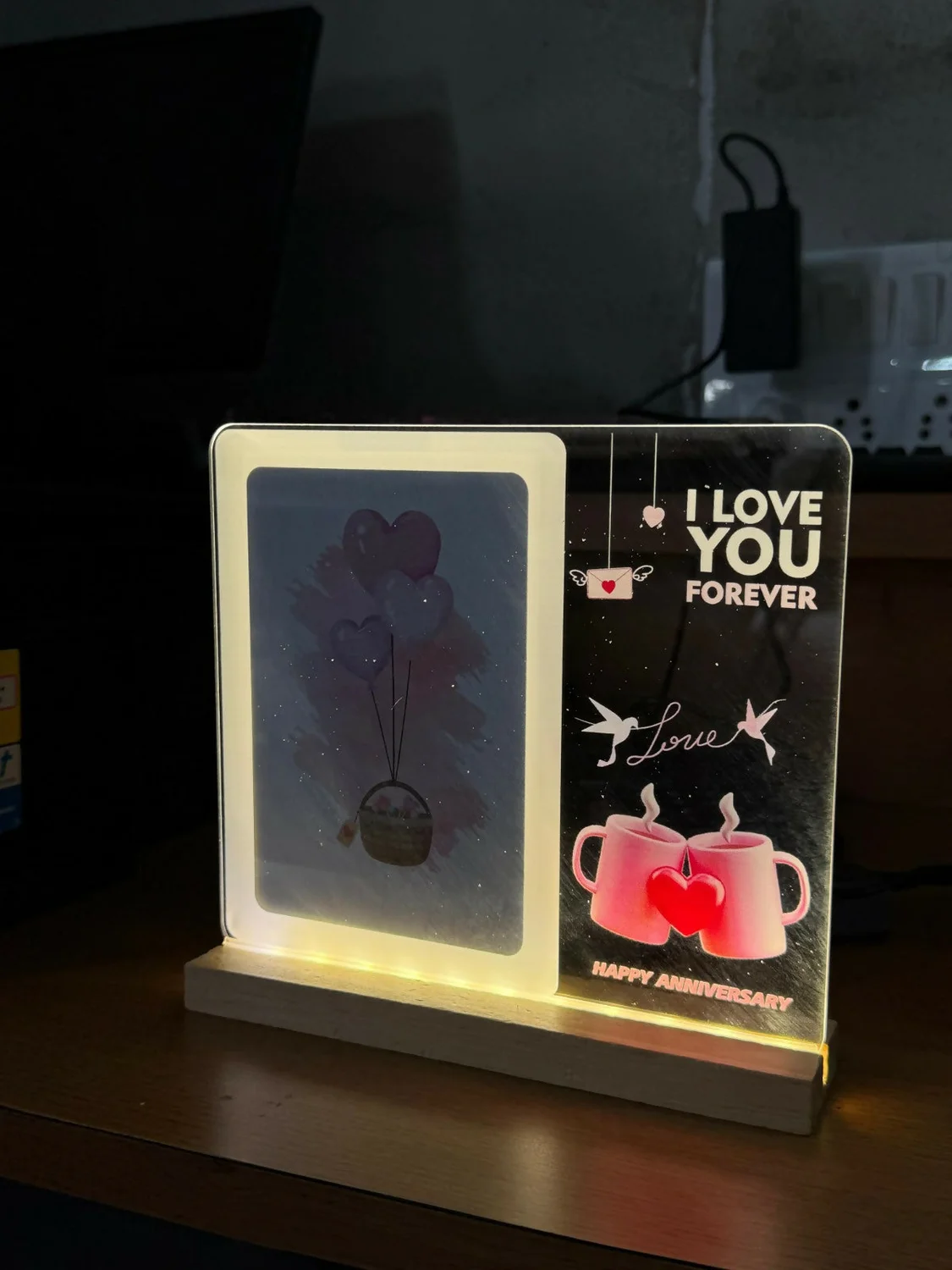 Add elegance and warmth to your décor with this LED Acrylic Message Lamp. Featuring a clear acrylic panel with printed design and a soft warm LED glow, this lamp blends modern style with emotional appeal.