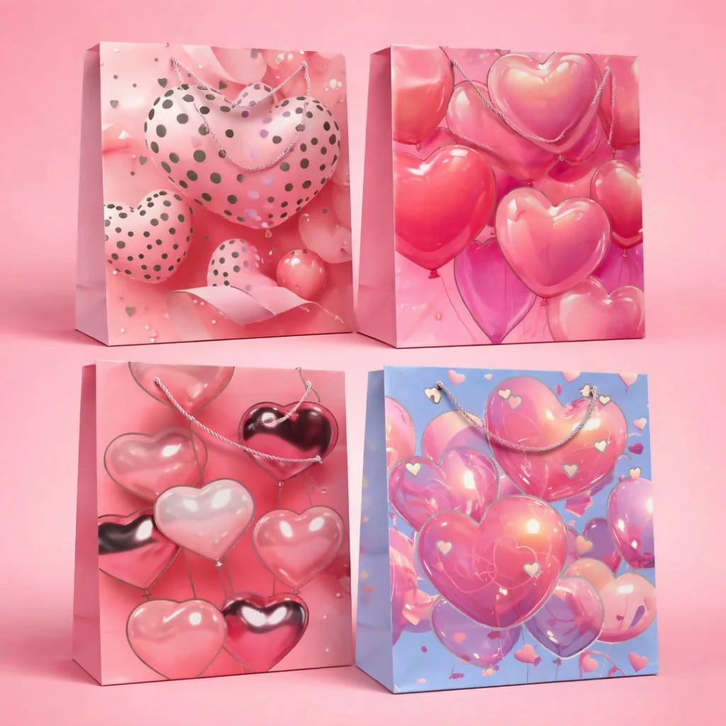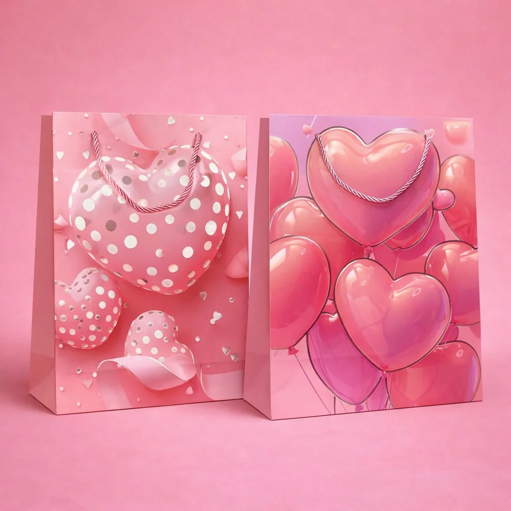 gift bag 1 piece, paper gift bag, balloon print bag, heart design bag, gift packaging bag, birthday gift bag, party gift bag, carry bag with handle, decorative gift bag, return gift bag, paper carry bag, premium gift bag, packaging bag, small gift bag