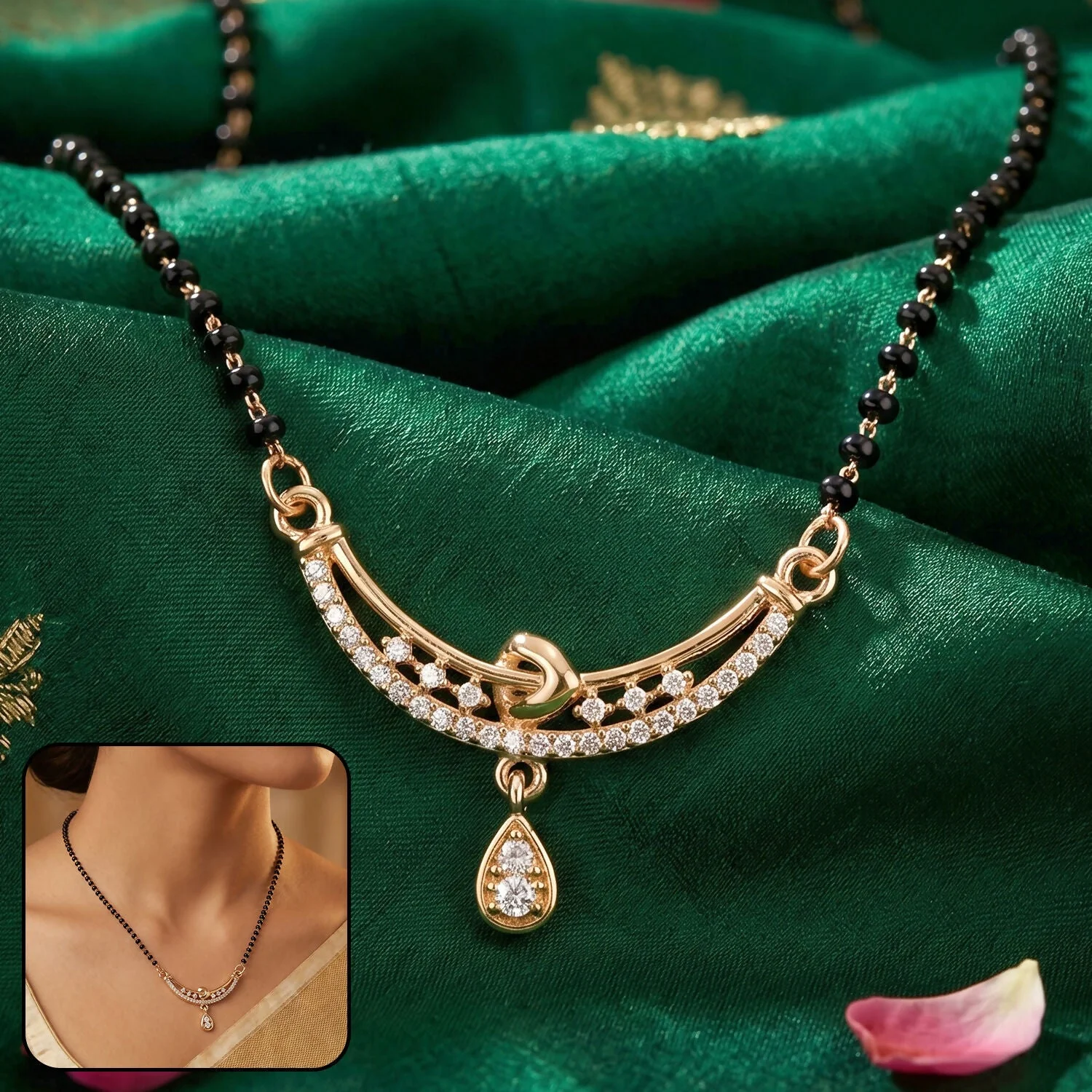 Be the first to review Heart Charm Mangalsutra Necklace with Teardrop Pendant 1 Pc!