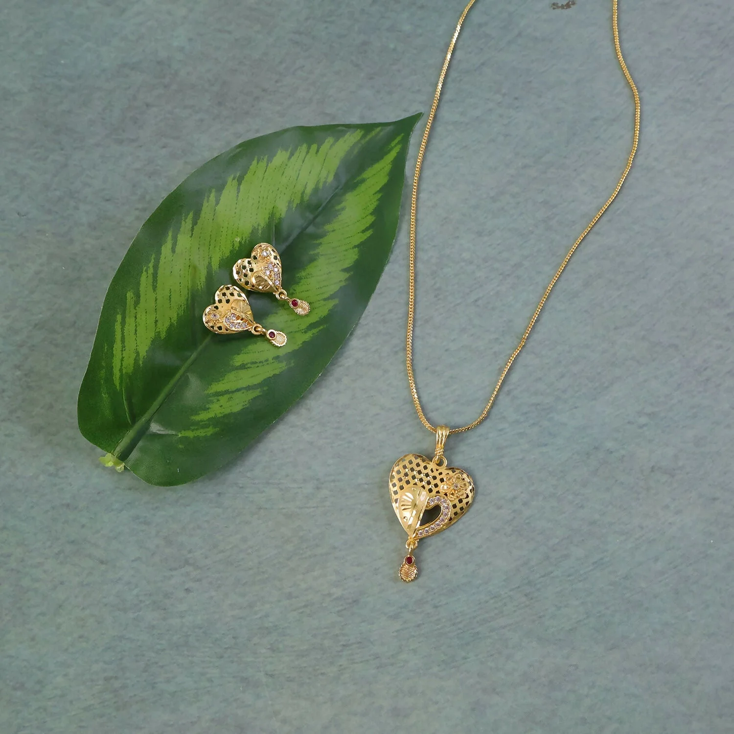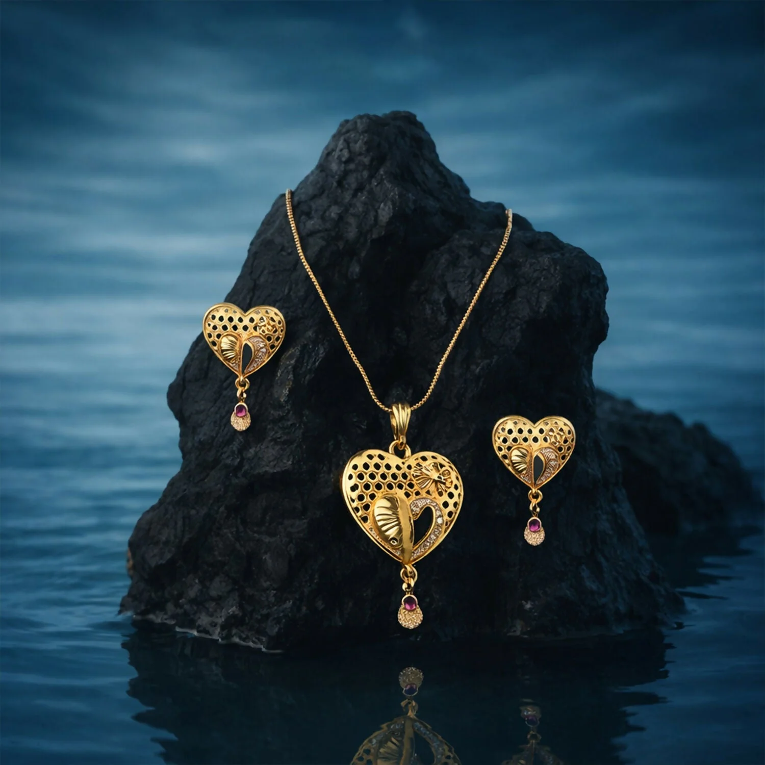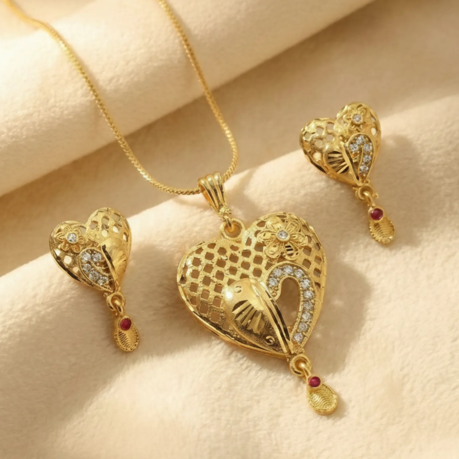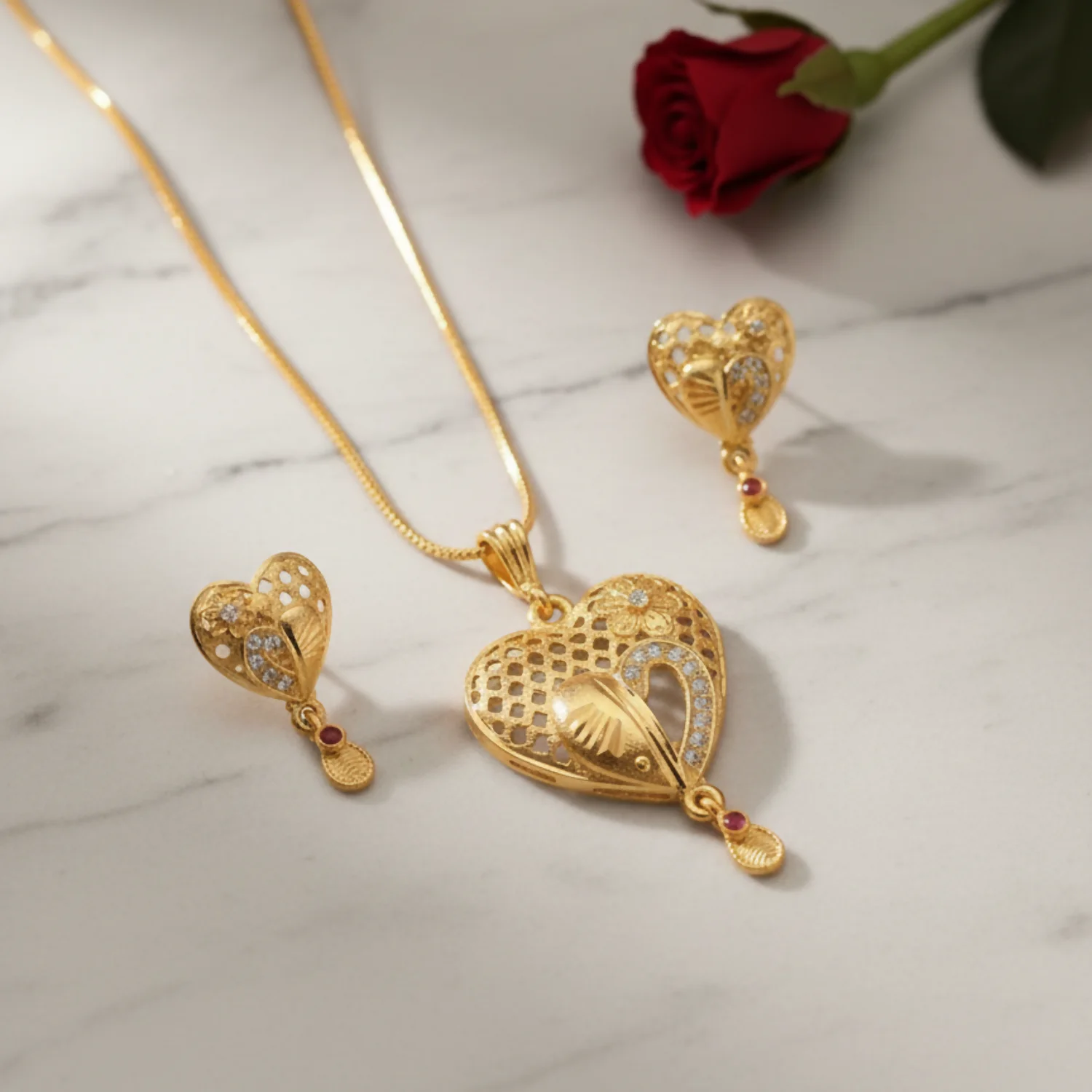 Be the first to review Heart Motif Gold Pendant and Earring Set Elegant Traditional Jewelry Set for Women!
