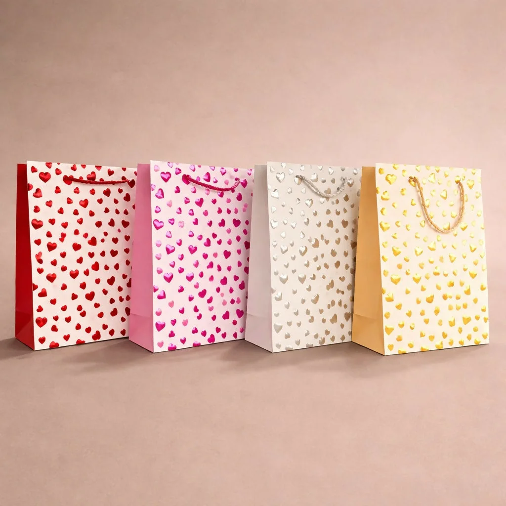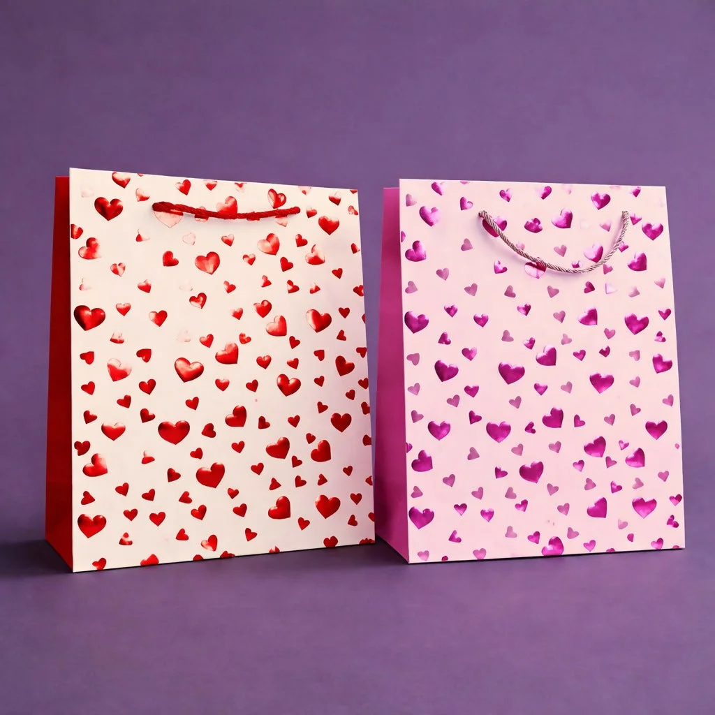 Make your gifts extra special with this charming heart print paper gift bag, designed to add a romantic and joyful touch to your presentation. Featuring a vibrant heart pattern and sturdy rope handles, this bag is perfect for gifting on occasions like birthdays, anniversaries, Valentine’s Day, and celebrations. Its spacious design ensures you can easily pack a variety of items while maintaining a stylish look.