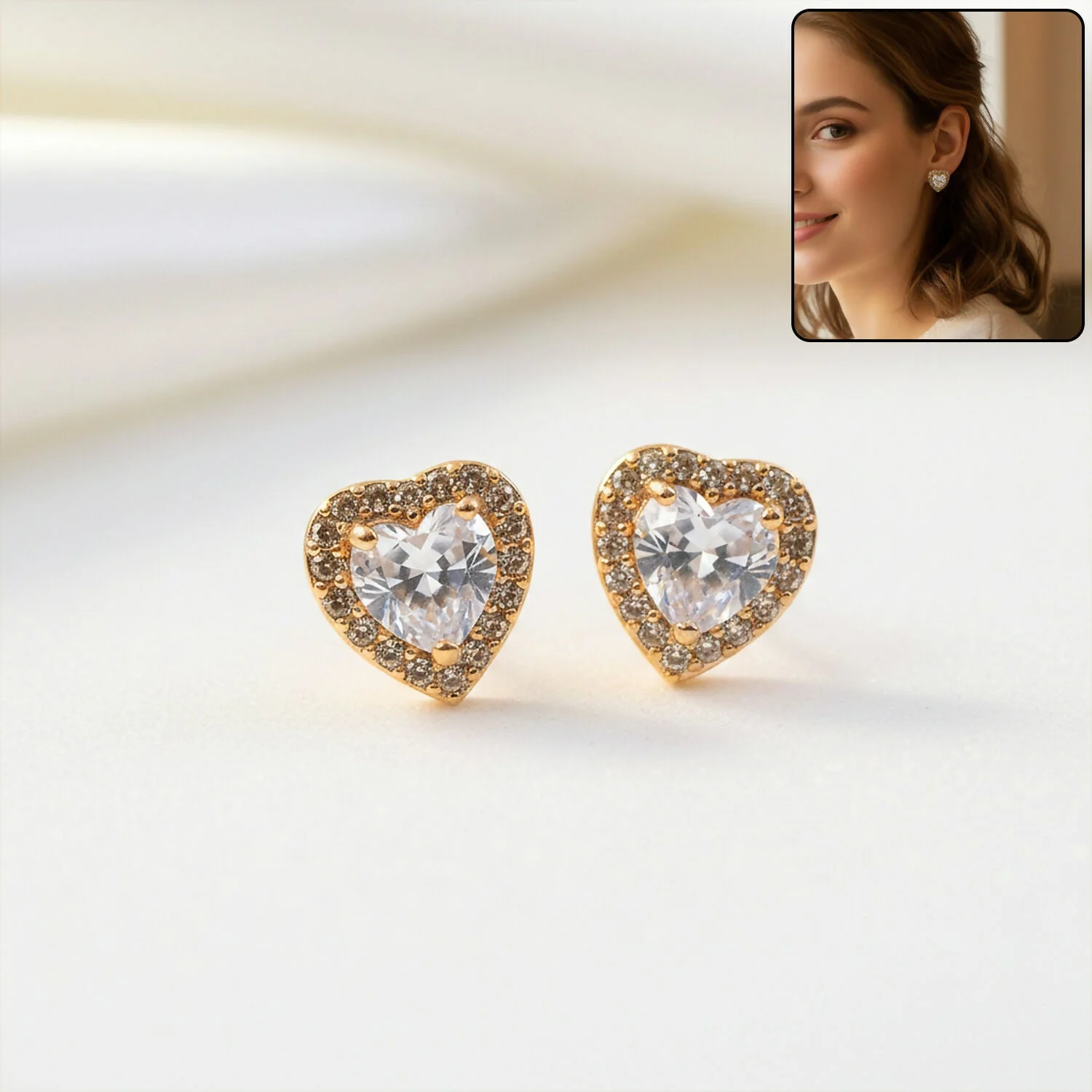 Add a touch of elegance to your look with these heart shape crystal stud earrings, designed to bring subtle sparkle and timeless charm. The heart-inspired design features a beautifully cut central crystal surrounded by shimmering accent stones, creating a refined and graceful appearance. These earrings are perfect for everyday styling as well as special occasions, blending effortlessly with both ethnic and western outfits. Their classic stud style ensures a secure and comfortable fit for regular wear. Ideal for gifting or personal use, these earrings make a stylish addition to any jewellery collection.