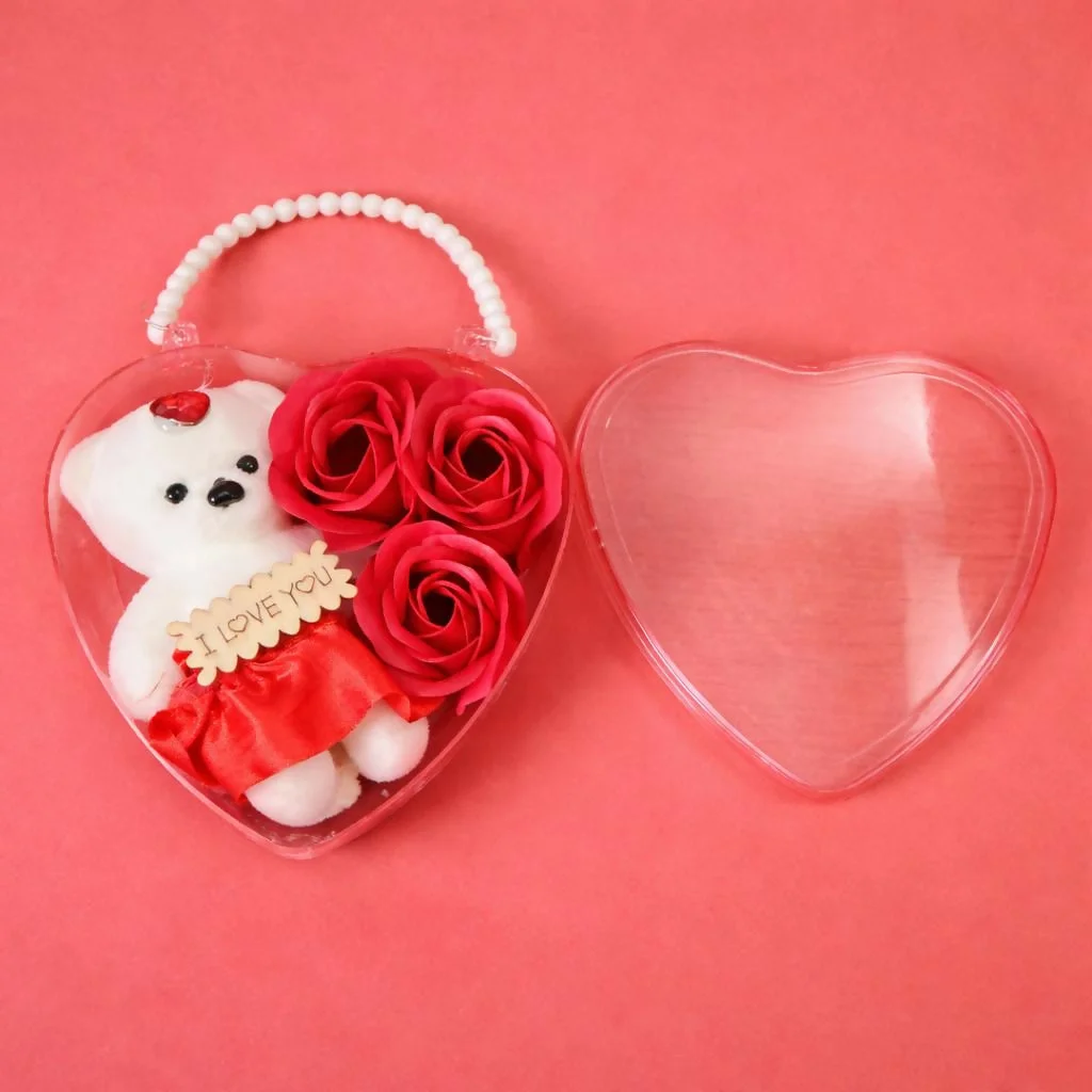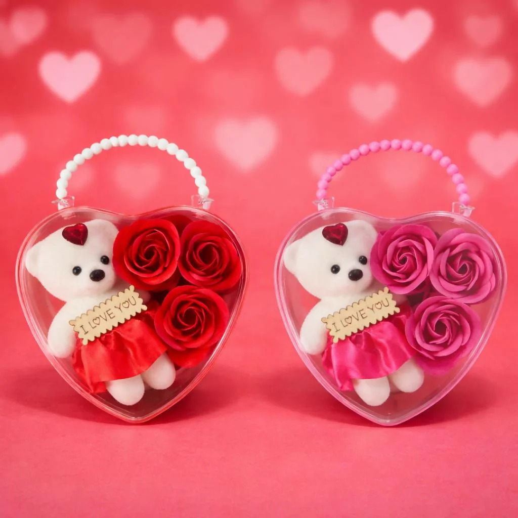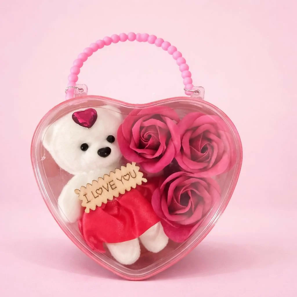 romantic gift box, teddy gift set, heart shape gift, valentine gift, anniversary gift, love gift set, cute teddy gift, rose gift box, gift for girlfriend, gift for wife, romantic present, birthday gift, decorative gift box