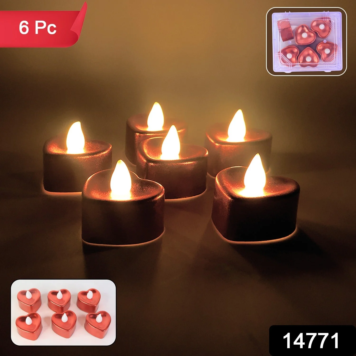 Bring warmth and charm to your surroundings with this Set of 6 Heart Shape LED Flameless Candles. Designed to create a glowing ambiance, these candles provide the beauty of real candlelight without smoke, wax drips, or fire hazards. Perfect for romantic dinners, festive décor, weddings, and gifting, they are long-lasting, reusable, and safe for both indoor and outdoor use.