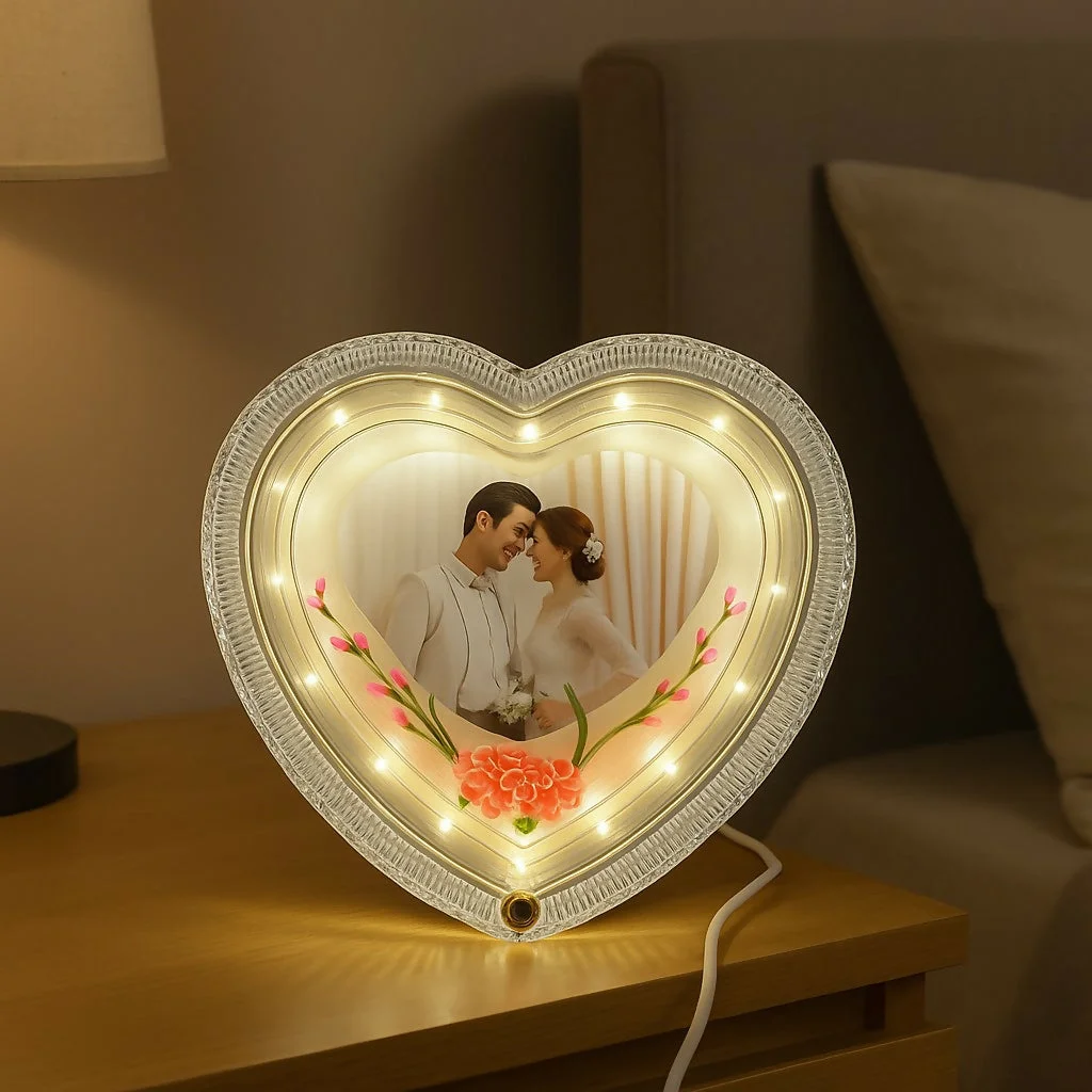 heart shape LED lamp, photo frame night light, romantic couple gift, wedding anniversary gift, Valentine’s Day special lamp, customized photo lamp, LED table décor light, heart photo frame lamp, bedroom romantic night light, couple bedside lamp, gift for husband wife, glowing photo frame, heart LED night lamp, personalized lamp for couples.