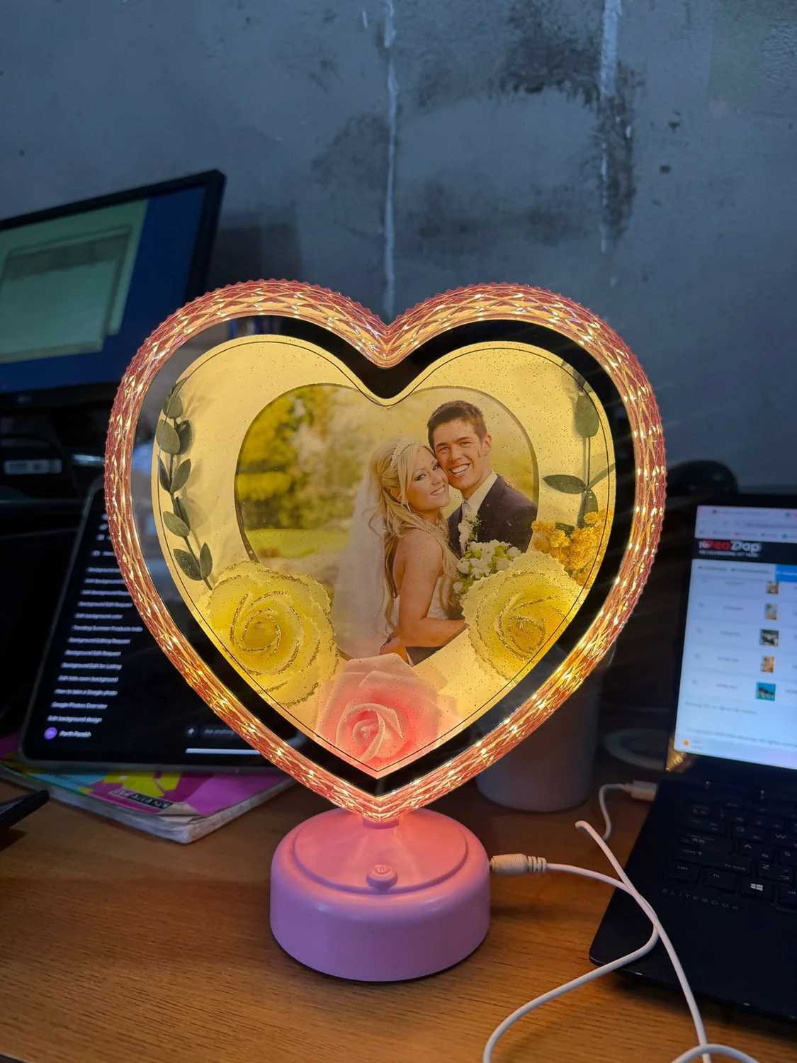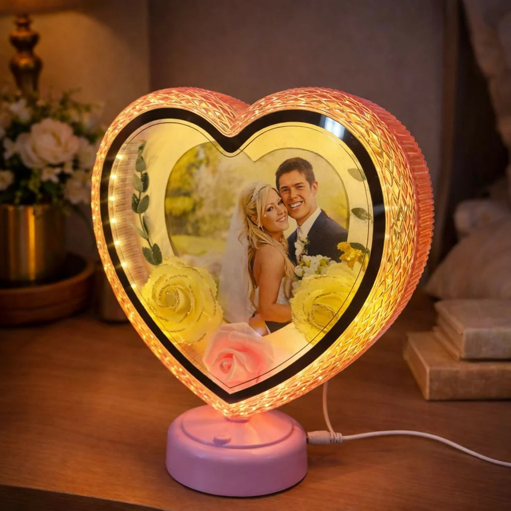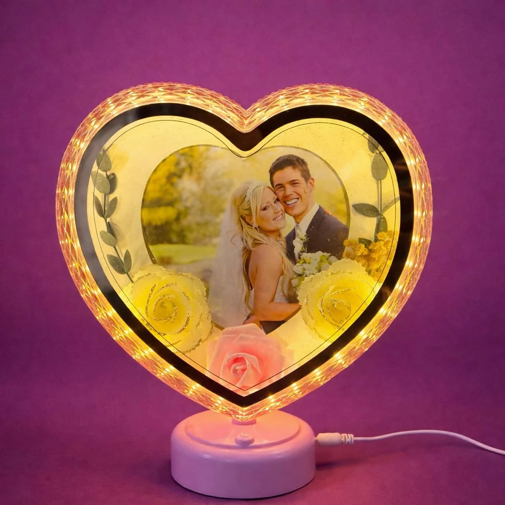 heart photo frame, led photo frame, romantic gift, couple photo frame, wedding gift frame, anniversary gift, glowing photo frame, home decor frame, table decor item, memory frame, led frame decor, heart shape frame, gift for couple, bedroom decor, love gift