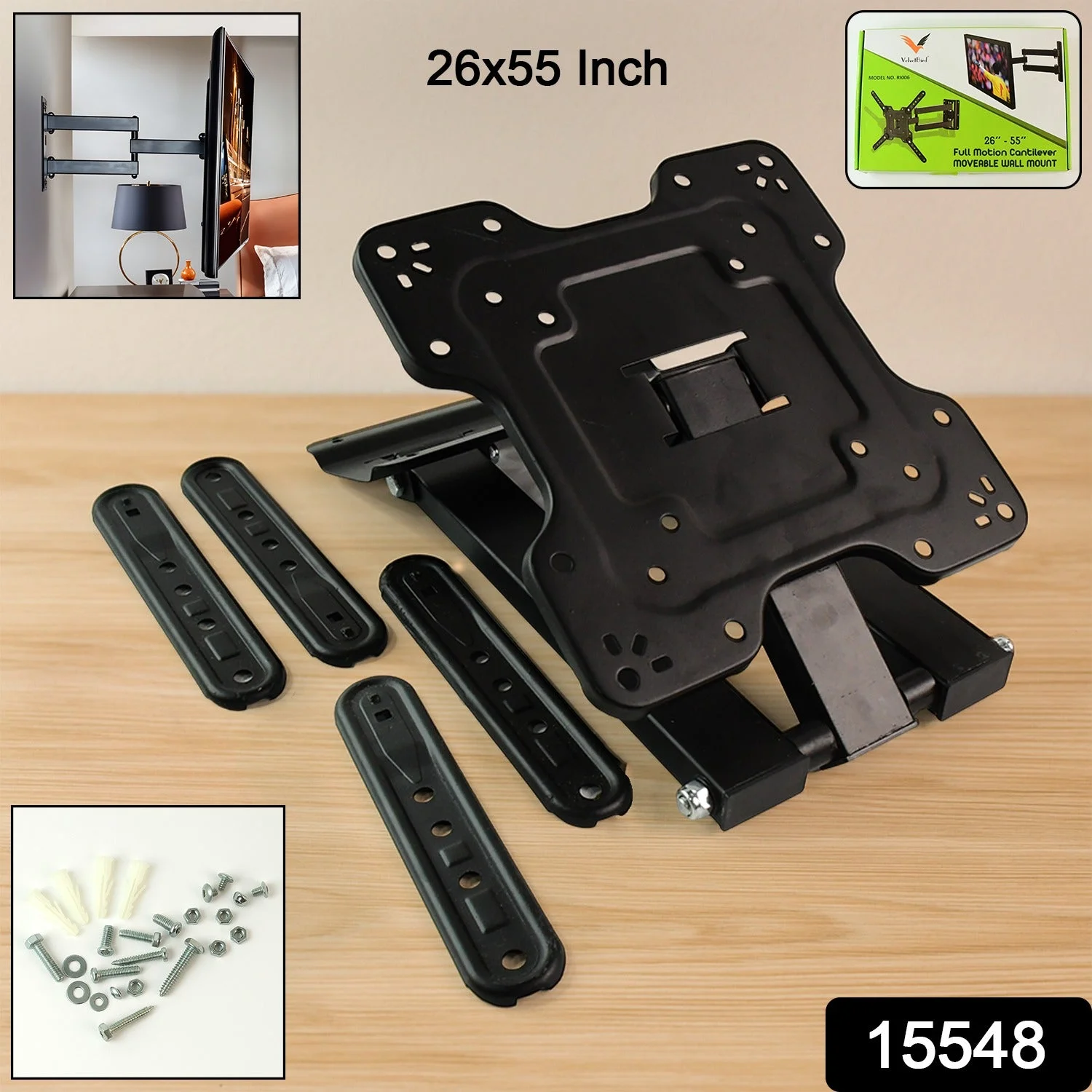 Maximize your viewing experience with this premium-quality Full Motion Wall Mount Bracket, designed to securely hold flat-screen LED, LCD, and Smart TVs ranging from 26 to 55 inches. This universal bracket features a cantilever arm that enables full motion flexibility — allowing you to tilt, swivel, and extend your TV for the most comfortable and glare-free viewing angle.