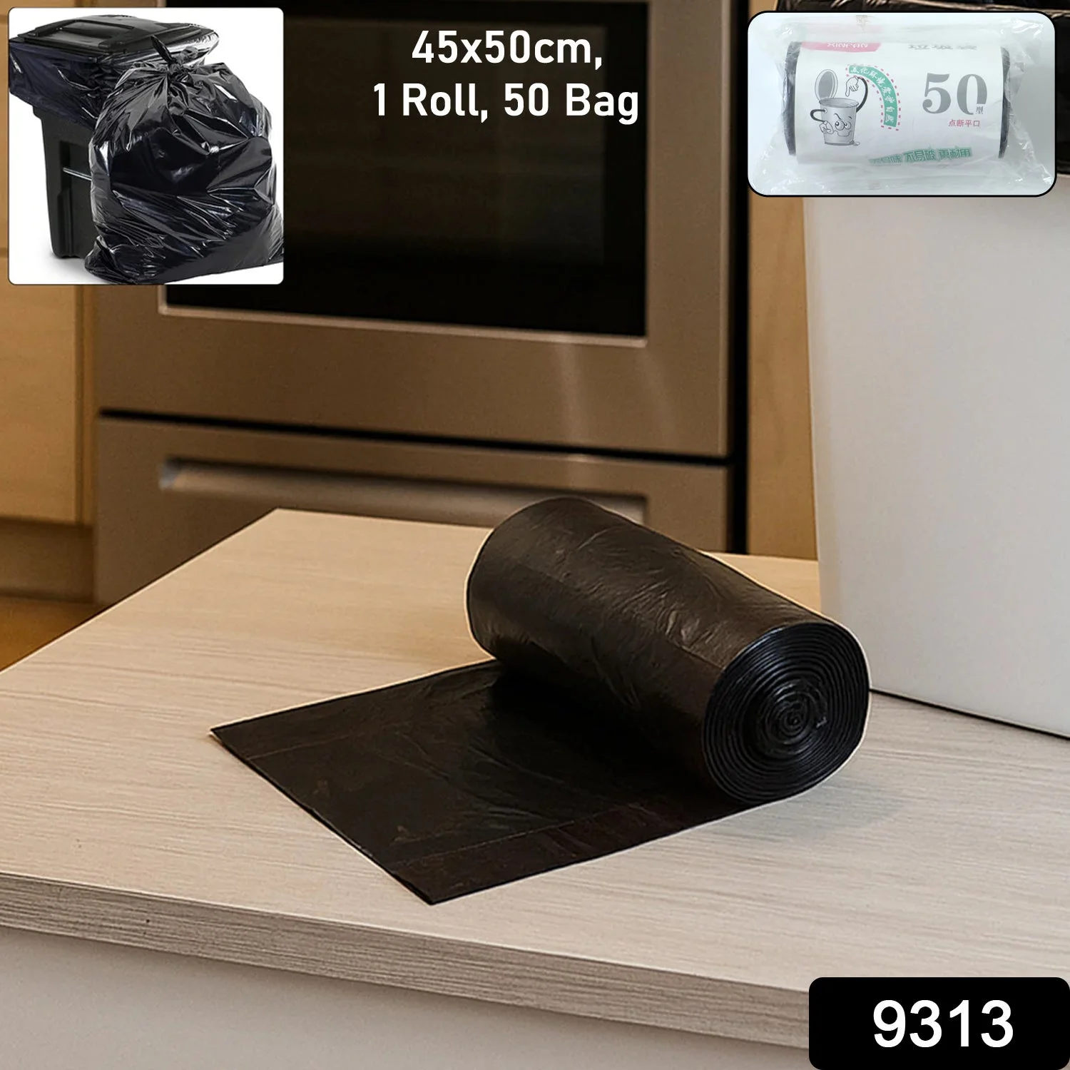 Heavy Duty Garbage Trash Bags Roll 45x50 Cm 50 Bags 1 Roll – Leak Proof Disposable Dustbin Liners for Kitchen, Office, Bathroom & Daily Waste Management