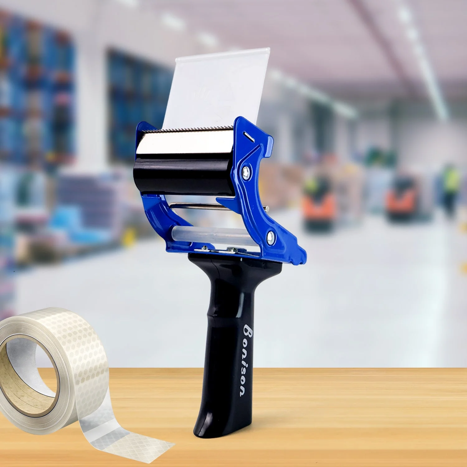 tape dispenser, packing tape tool, sealing tape dispenser, carton sealing machine,parcel packing tool,manual tape cutter, box sealing equipment,warehouse packing tool,handheld tape dispenser,plastic and metal tape tool, blue and black tape applicator