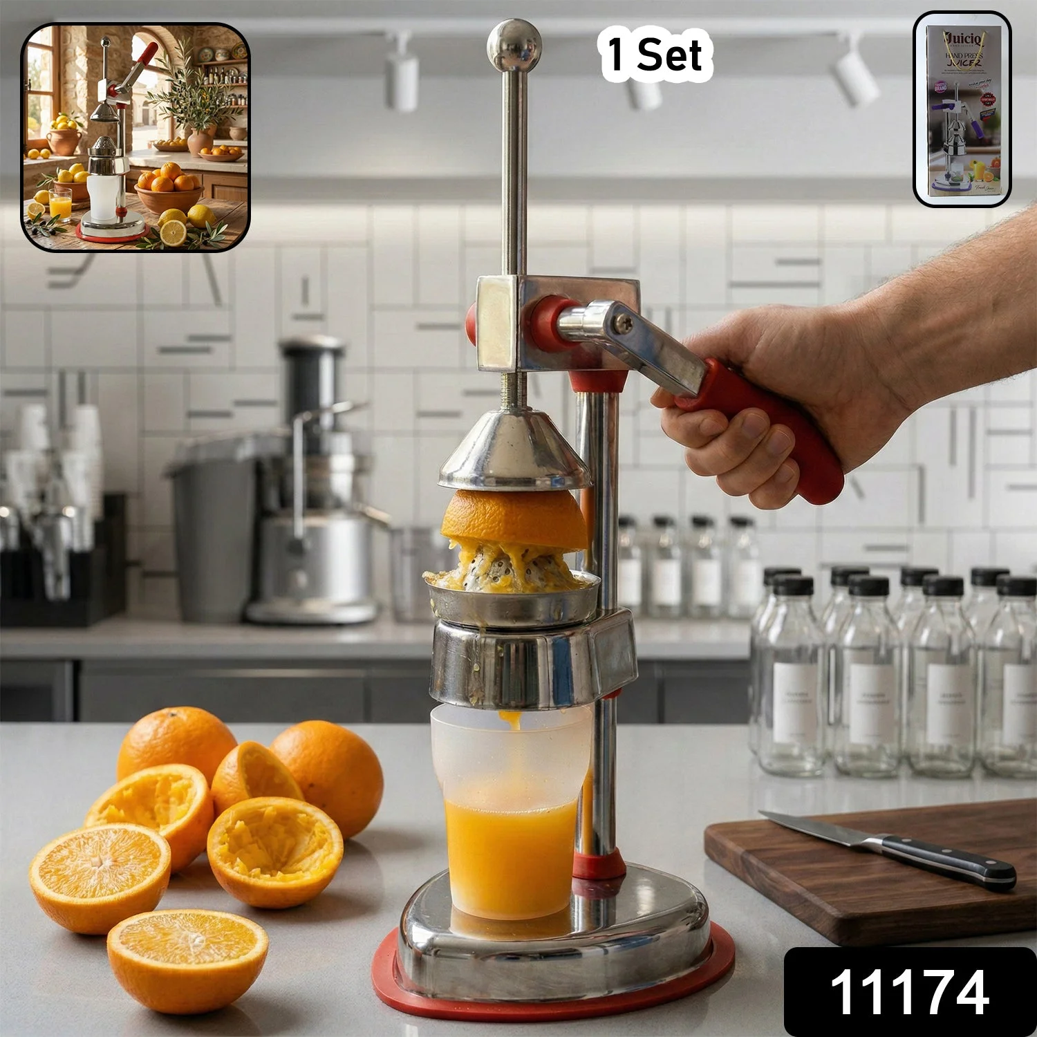 Heavy Duty Manual Hand Press Juicer Machine 1 Set Stainless Steel Citrus Fruit Juice Extractor Machine with Strong Lever Handle for Orange Mosambi Lemon and Pomegranate