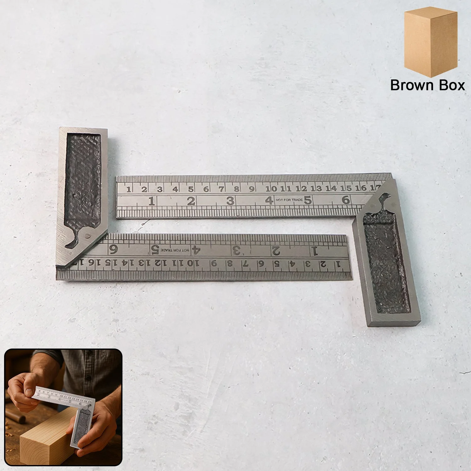 Ensure perfect alignment and precision in your work with this 2 Pc Metal Try Square Ruler Set, designed for carpenters, woodworkers, and metal fabricators. Made from durable, corrosion-resistant steel, these rulers deliver high measurement accuracy and long-lasting performance. Each try square features a solid base and etched graduations in both inches and centimeters for clear visibility and reliable readings. Ideal for checking right angles, marking lines, or ensuring accurate cutting and assembly, this tool is an essential addition to any professional or DIY toolkit. The set comes neatly packed in a sturdy brown box for protection and easy storage.