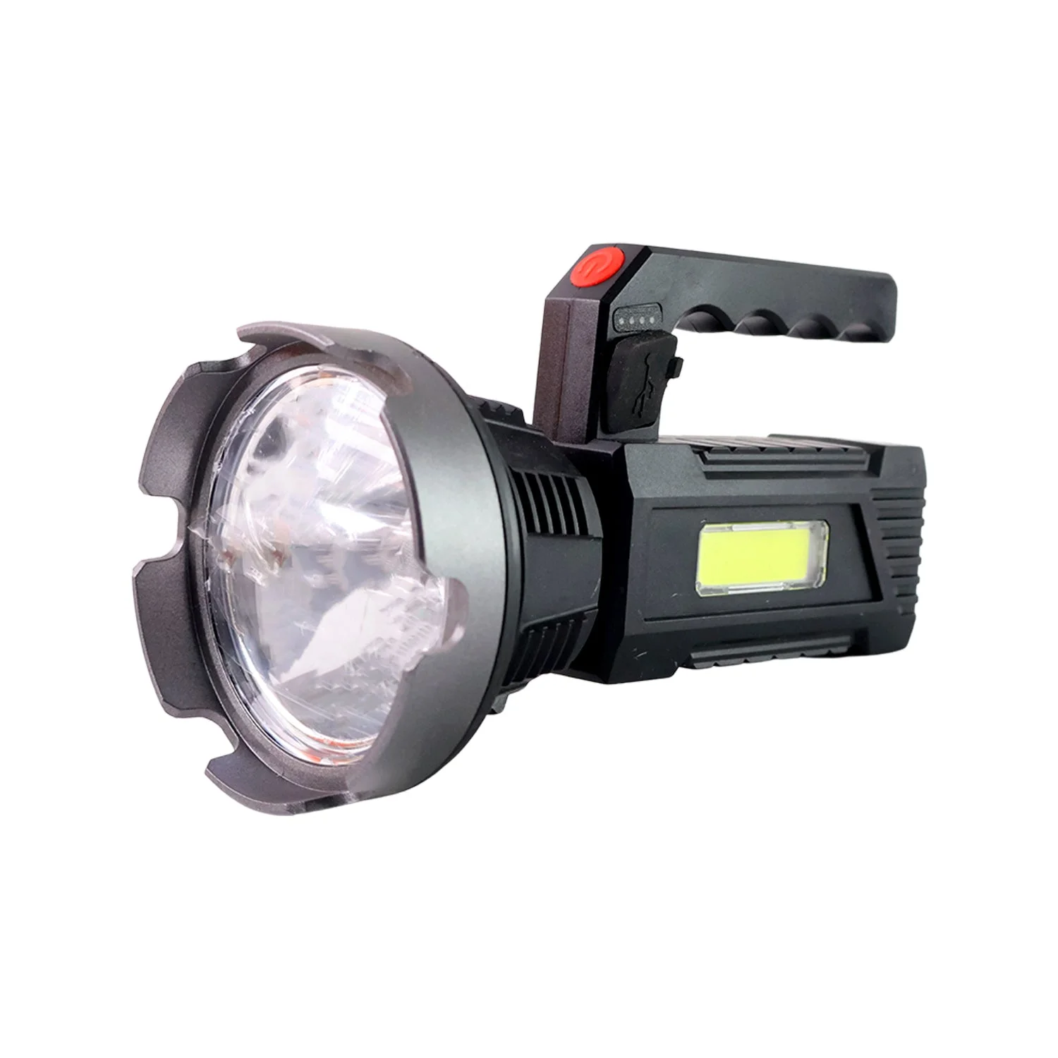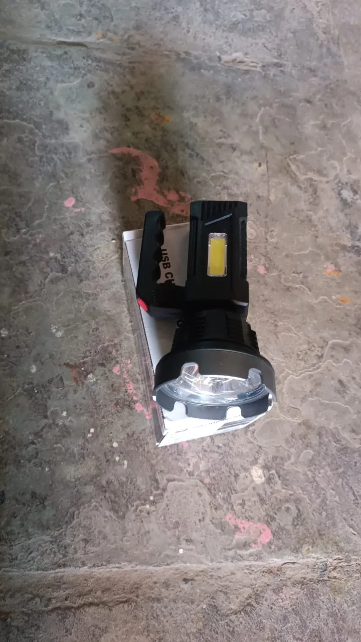 Experience unmatched brightness and versatility with this high-performance rechargeable LED hand torch, designed to meet the toughest lighting demands. Featuring a robust front LED beam for long-distance focus and a COB side light for wider area illumination, this torch is the perfect tool for both outdoor and indoor utility. The ergonomic handle provides convenience in handling, while the USB charging capability ensures that you stay powered up wherever you go. Whether it's for camping, working in dark environments, or home backup lighting, this flashlight delivers powerful performance with maximum portability.