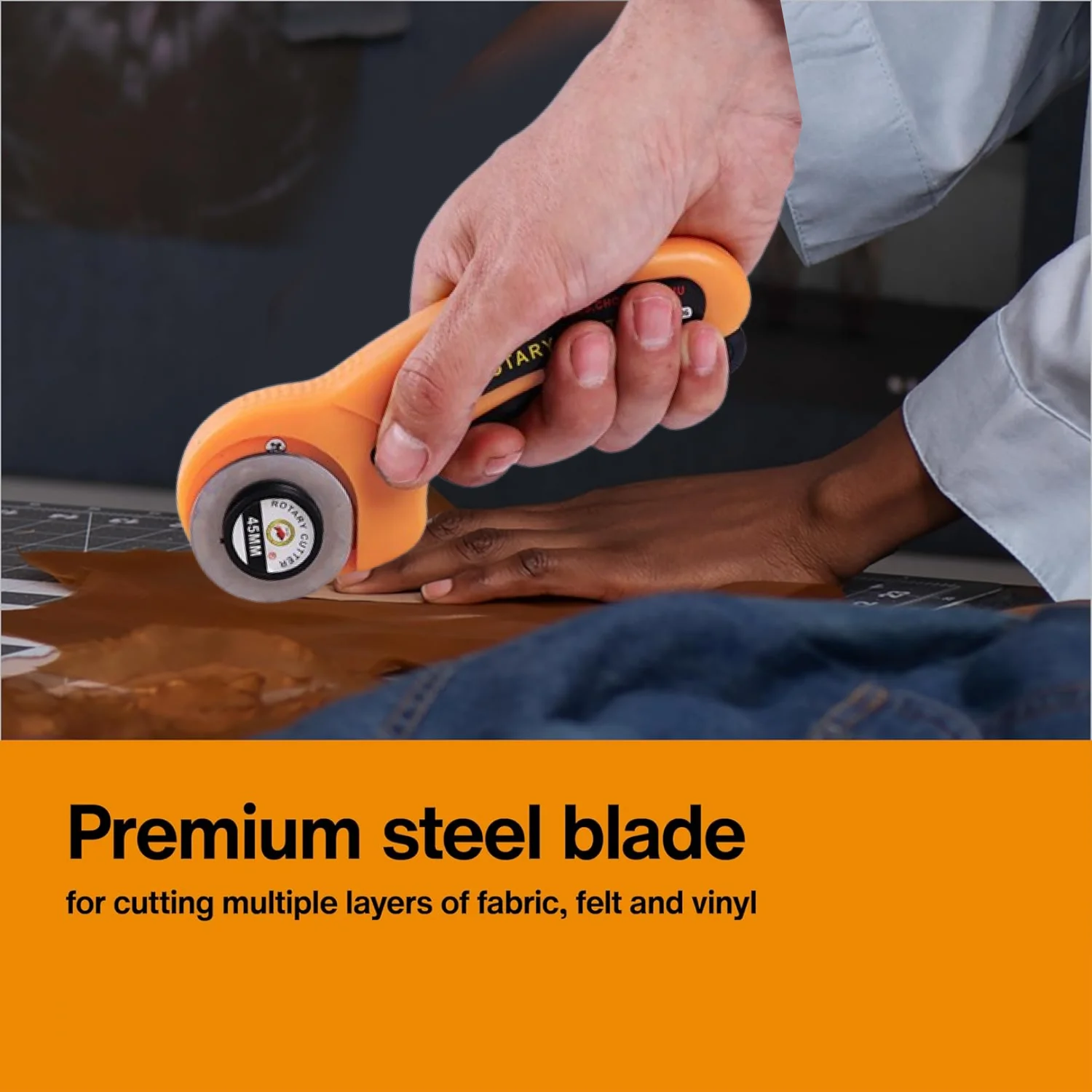 Heavy Duty Rotary Cutter with 45mm Sharp Replaceable Blade for Fabric, Leather, Paper, Quilting, Sewing, Craft, and DIY Projects (1 Pc)