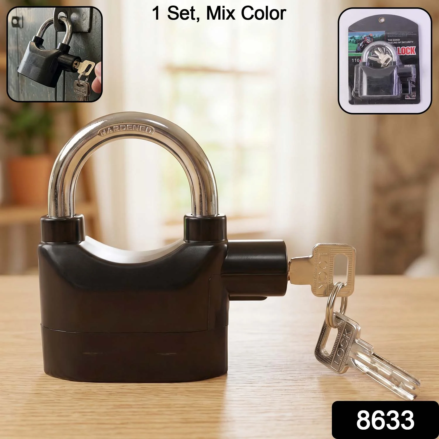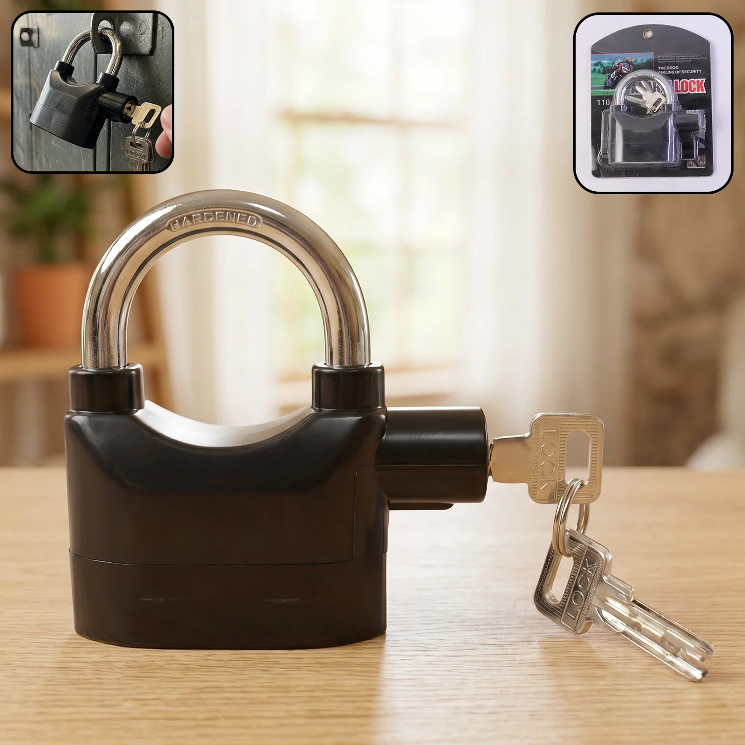 Heavy Duty Security Alarm Padlock with Built In Sound Alert System Key Operated Anti Theft Lock for Home Door Gate Bike Shutter Safety Lock With 3 keys 1 Set