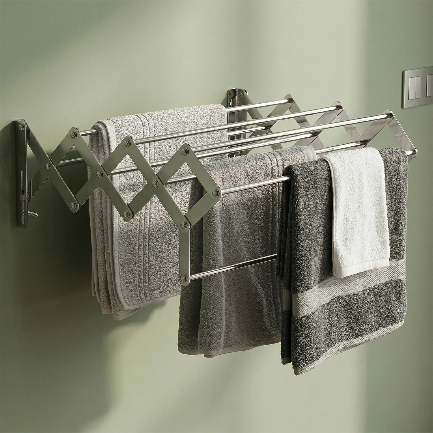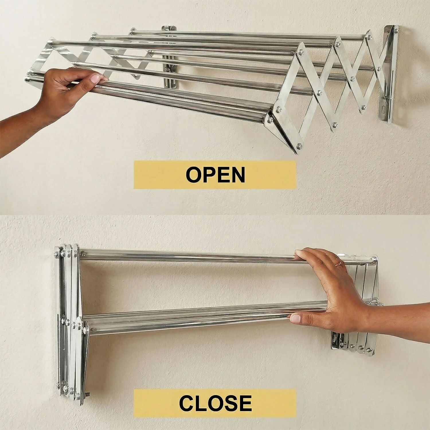Make your laundry routine more efficient with this foldable wall mounted cloth drying stand designed for maximum convenience and space saving. Built with a strong expandable structure, this drying rack easily opens to provide ample space for drying multiple clothes and folds back neatly when not in use. Its sturdy design ensures stability while holding garments like towels, clothes, and daily laundry essentials.