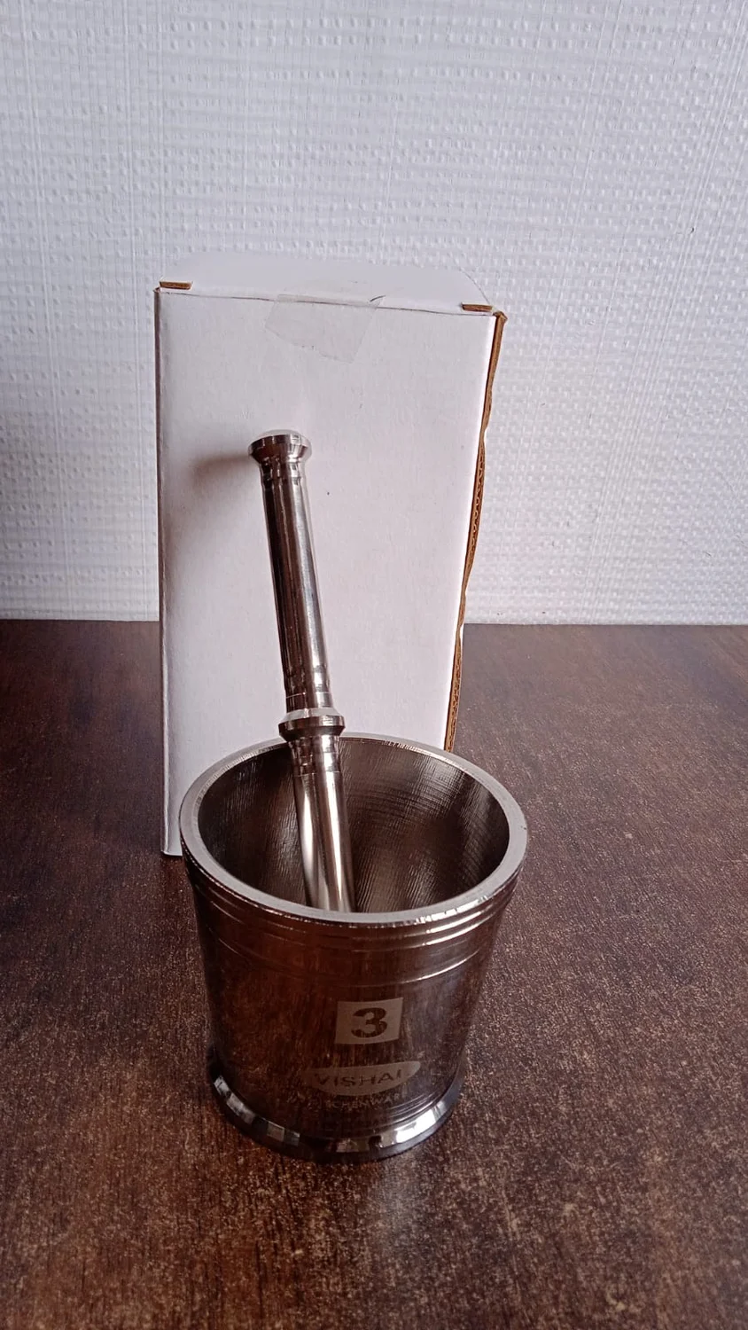 Crafted for durability and performance, this Stainless Steel Mortar and Pestle Set is a must-have tool for any modern kitchen. Ideal for grinding, crushing, and mixing herbs, spices, garlic, and other condiments, this 2-piece set combines elegant design with functionality. Its sturdy construction ensures long-lasting use without cracking, rusting, or retaining odors. Whether you're preparing fresh masalas or making herbal blends, this steel khalbatta set enhances your cooking experience with traditional precision and modern style.