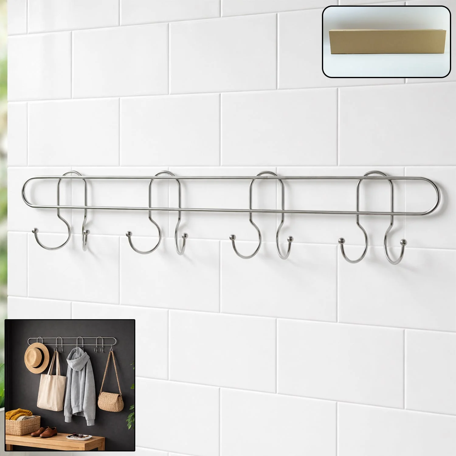 heavy duty wall hook rack, stainless steel hook rack, wall mounted hooks organizer, multi hook hanger rack, clothes hanging hooks, bag hanger wall rack, towel hook rack, key holder wall hooks, kitchen hook rack, bathroom hook organizer, rust resistant steel hooks, durable wall hanger rack, multipurpose hook stand, space saving wall hooks, home storage hook rack, strong adhesive hook rack, screw mounted hook rack, entryway organizer hooks, coat hanger wall rack, modern wall hook design, utility hanging rack, heavy duty hanger hooks