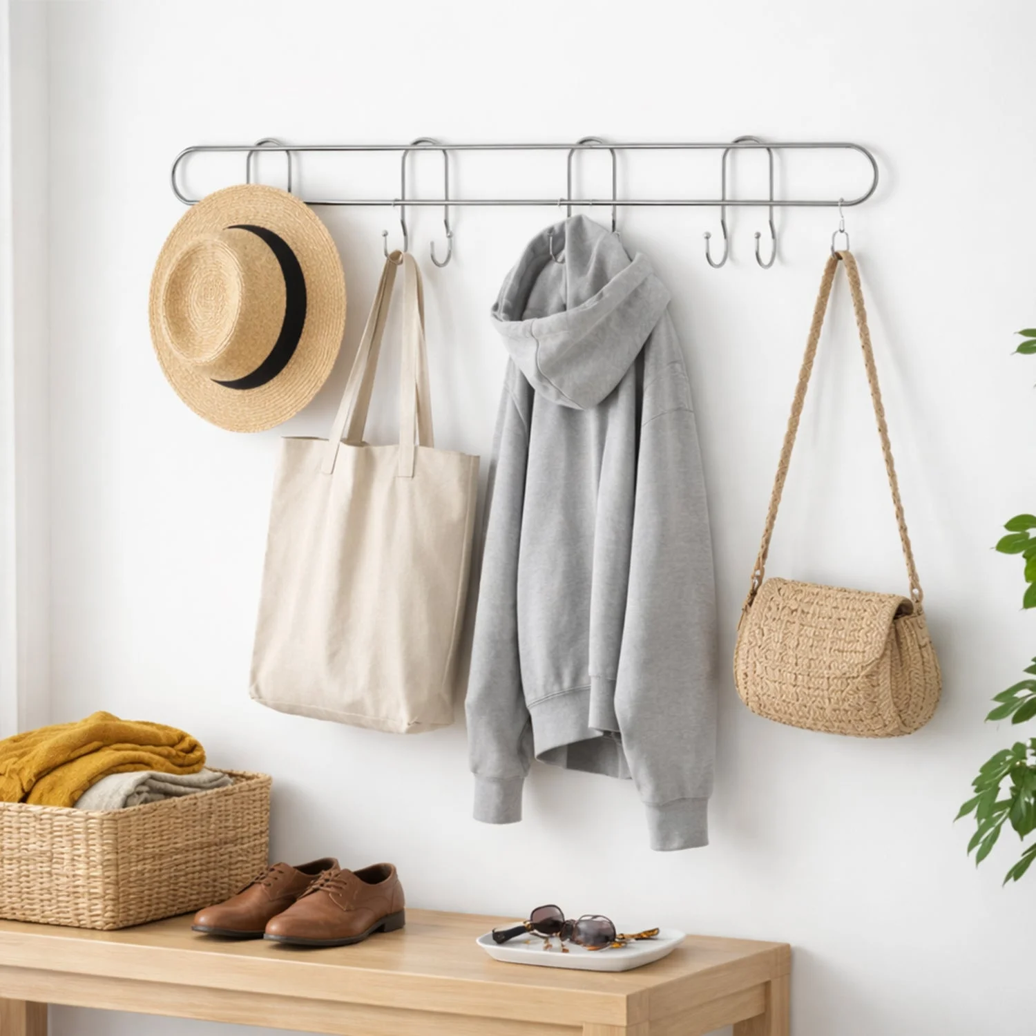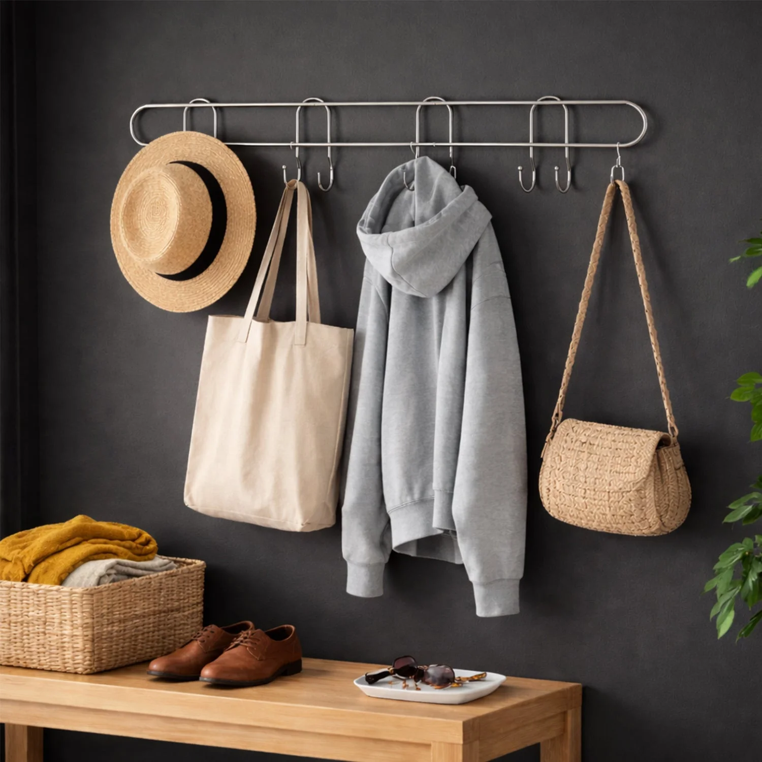 - Hanging clothes, bags, keys, and accessories