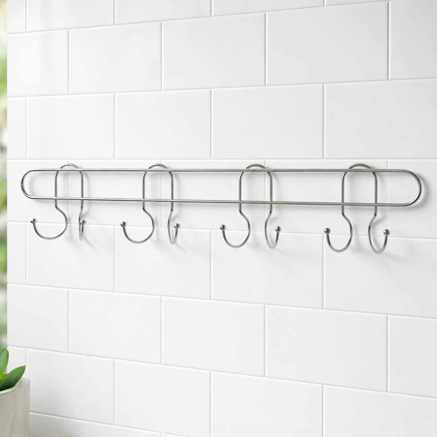 Organize efficiently with this wall mounted hook rack made from durable stainless steel. This heavy duty wall hooks rack can hold multiple items securely.