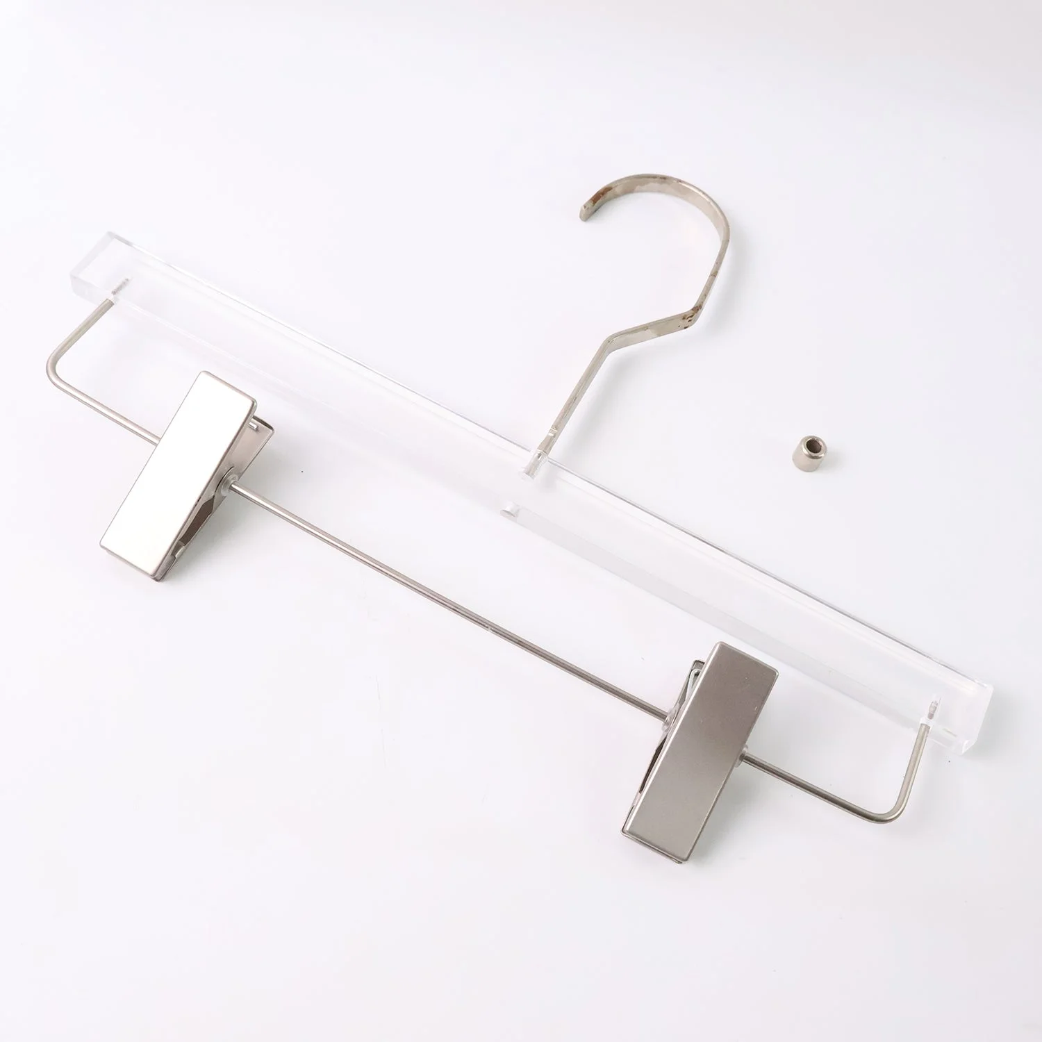 Premium Heavy-Duty Transparent Acrylic Trouser Skirt Hanger with Adjustable Metal Clips – Sleek Non-Slip Clip Hanger for Wardrobe and Closet Organization
