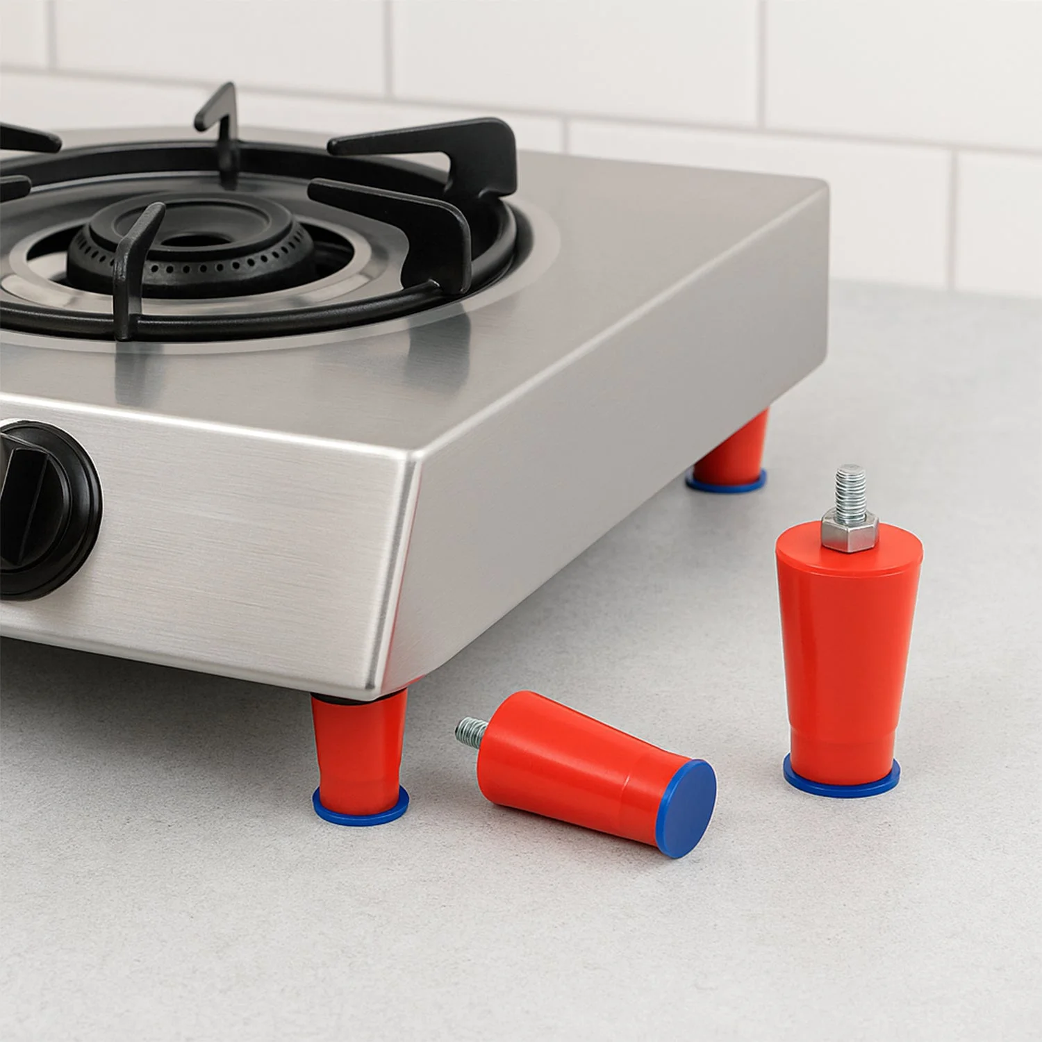 Upgrade your kitchen appliance stability and hygiene with this Set of Heavy-Duty Stove Legs designed for gas stoves and LPG burner platforms. Crafted with a metal core and covered in durable rubber, these legs offer a strong foundation with superior grip and resistance against kitchen wear and tear. The anti-skid blue base provides extra friction to prevent slipping and reduce vibration, while the threaded screw mount ensures firm attachment and adjustable height levelling.