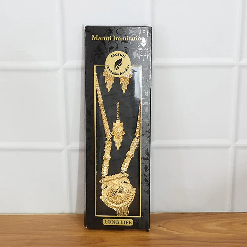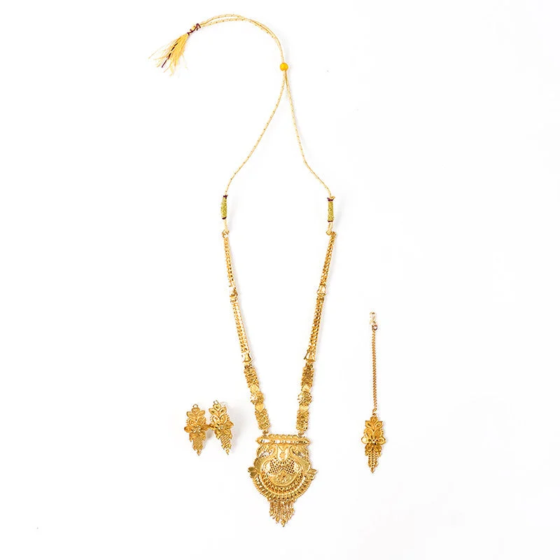 heritage-inspired necklace, gold-plated long necklace, traditional long necklace set, festive jewellery set, ceremony jewellery, bridal long necklace, ethnic necklace set, wedding jewellery set, designer gold-plated necklace, women’s festive jewellery