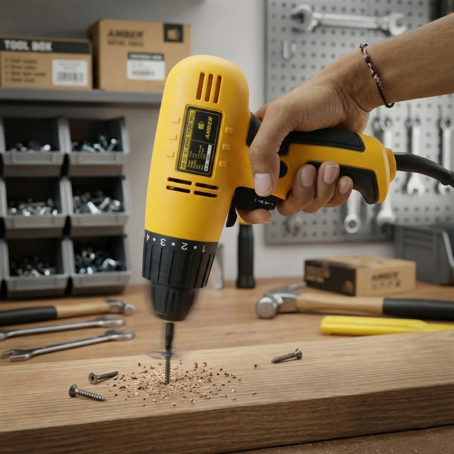 The compact power drill for home use works well for wood, plastic, and light wall drilling. Its ergonomic structure functions as a drilling machine for wall while remaining easy to control. Whether used as a handheld electric drill or a compact drilling tool, it performs as a dependable home repair drill machine.