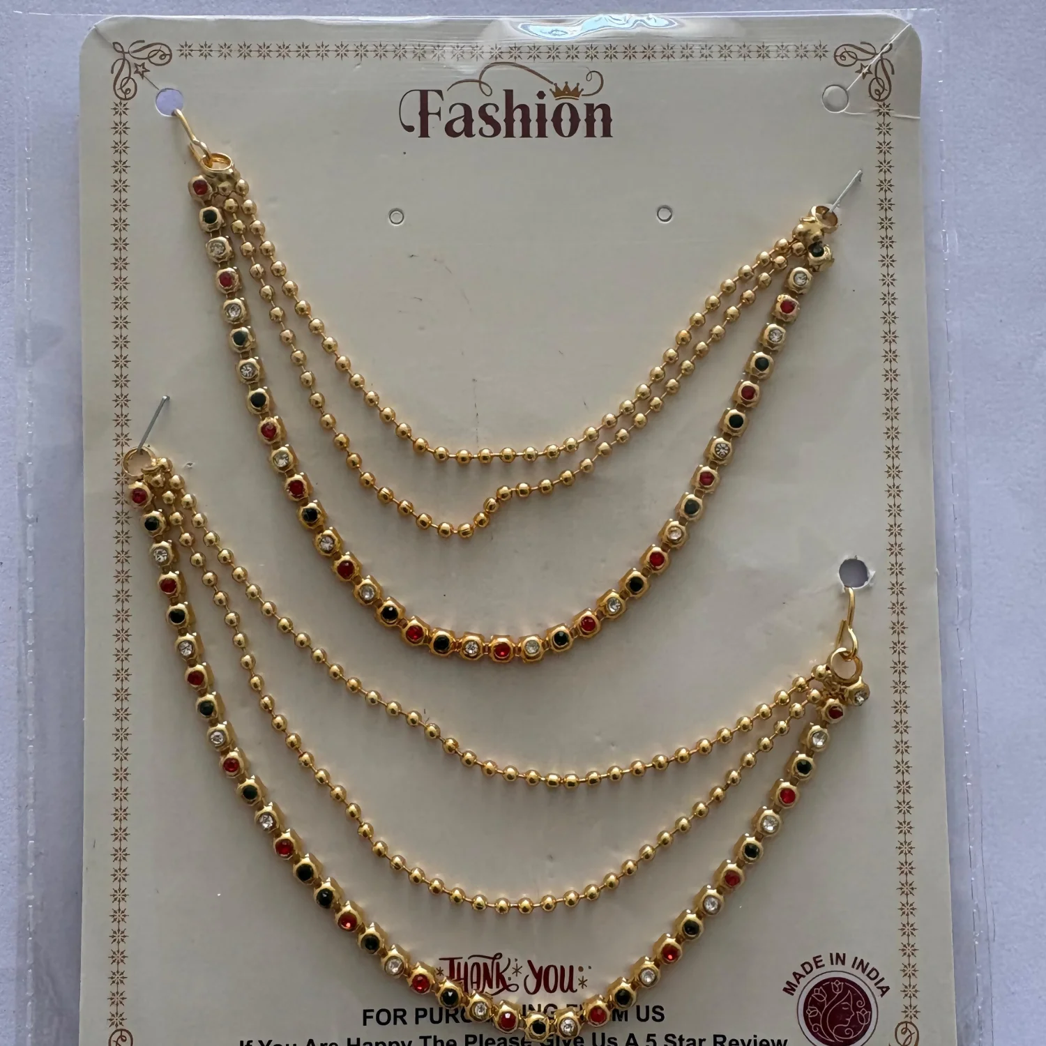 Be the first to review High Quality Gold Plated Triple Strand Ear Chains for Weddings (Multi)!