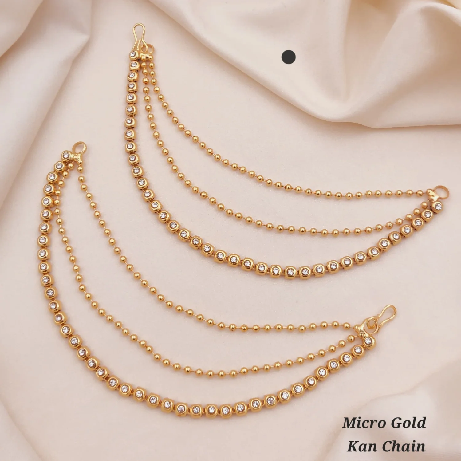 Detials: * The outermost (bottom) layer consists of a sleek gold chain studded with sparkling round white stones (CZ/American Diamonds) in a bezel setting.