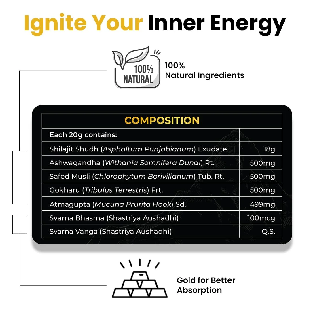 Himalayan Shilajit Gold Resin – 20g | Helps improve Stamina | Contains Gold
