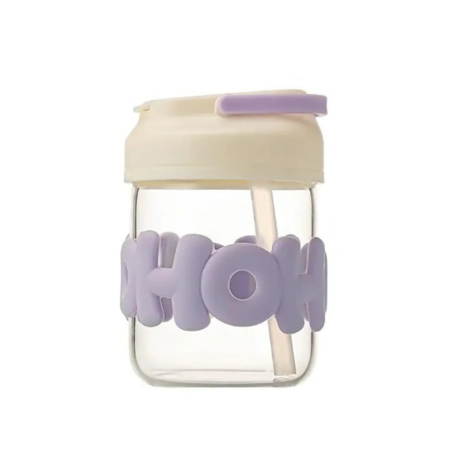 cute glass cup, hoho tumbler, purple smoothie cup, glass milk jar with straw, pastel aesthetic mug, eco friendly reusable glass, mason jar cup, iced coffee tumbler, borosilicate juice glass, leakproof travel mug, kids milk bottle, mini aesthetic glass, home decor kitchen accessories