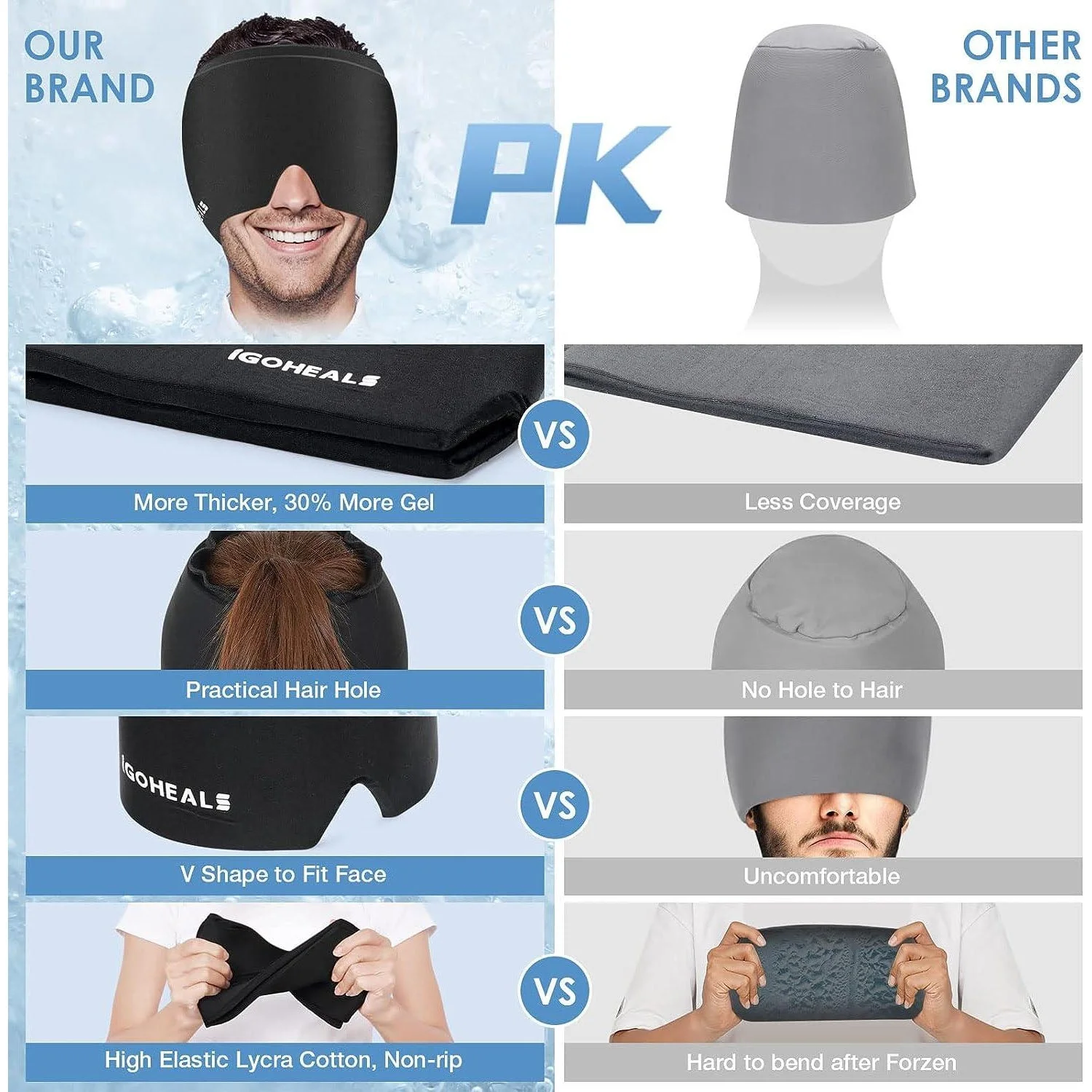 hot and cold therapy headache relief cap, full coverage migraine relief hat, ice pack hat for headaches, stress relief head wrap, sinus pain relief cap, eye strain relief hat, tension relief head wrap, reusable cooling head wrap, compression therapy head mask, migraine pain management, home use headache cap, cold therapy migraine mask, warm and cold therapy hat, therapeutic head wrap, multifunctional headache relief, soothing ice pack hat, head pain relief mask