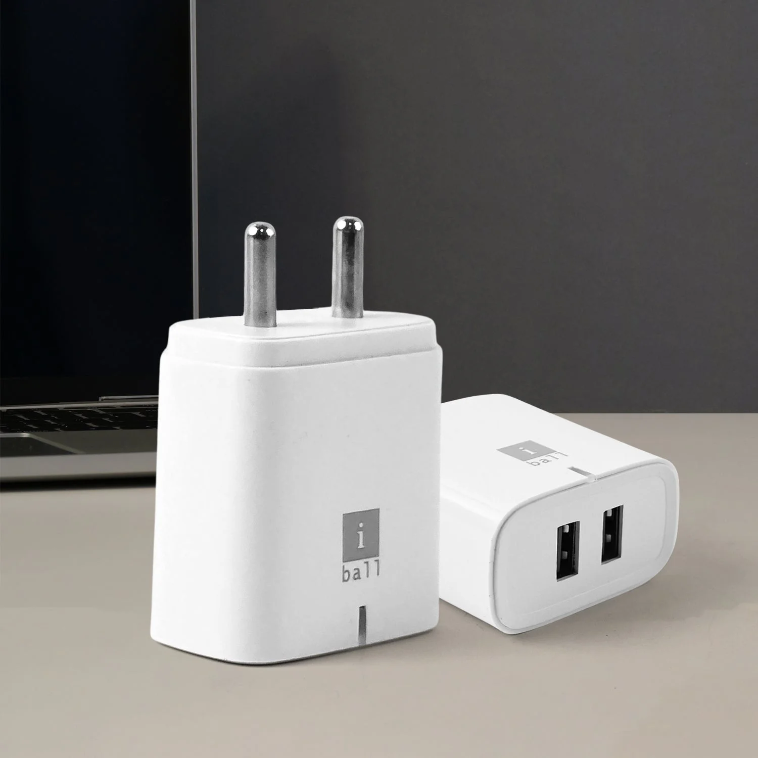 Power up your devices efficiently with the iBall Dual USB Wall Charger featuring a powerful 5V/3.1A dual-output system. Designed for fast and reliable charging, this adapter allows you to charge two USB-powered devices simultaneously without sacrificing speed or safety. Its compact and lightweight body makes it an ideal travel companion, while its sturdy construction ensures durability for everyday use. Compatible with a wide range of smartphones, tablets, and other gadgets, this dual-port wall charger is a smart essential for both home and office setups.