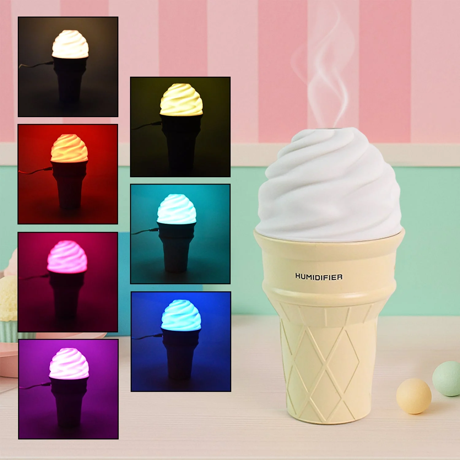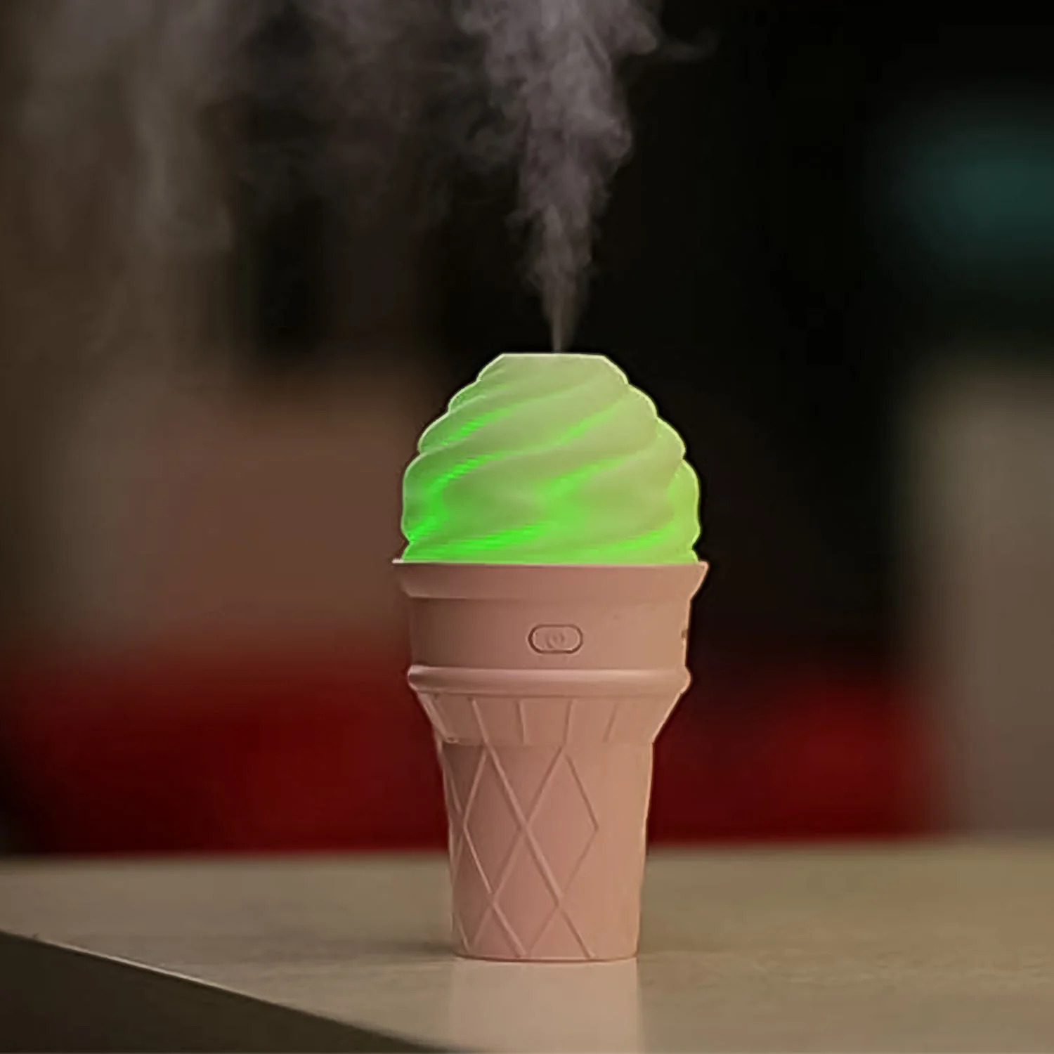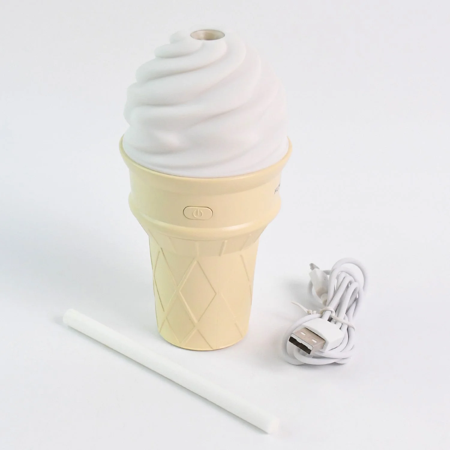 Ice Cream Cone Shape Air Freshener Humidifier | Cool Mist | LED Desktop Nightlight Air Purifier (1Pc / Cream Color)