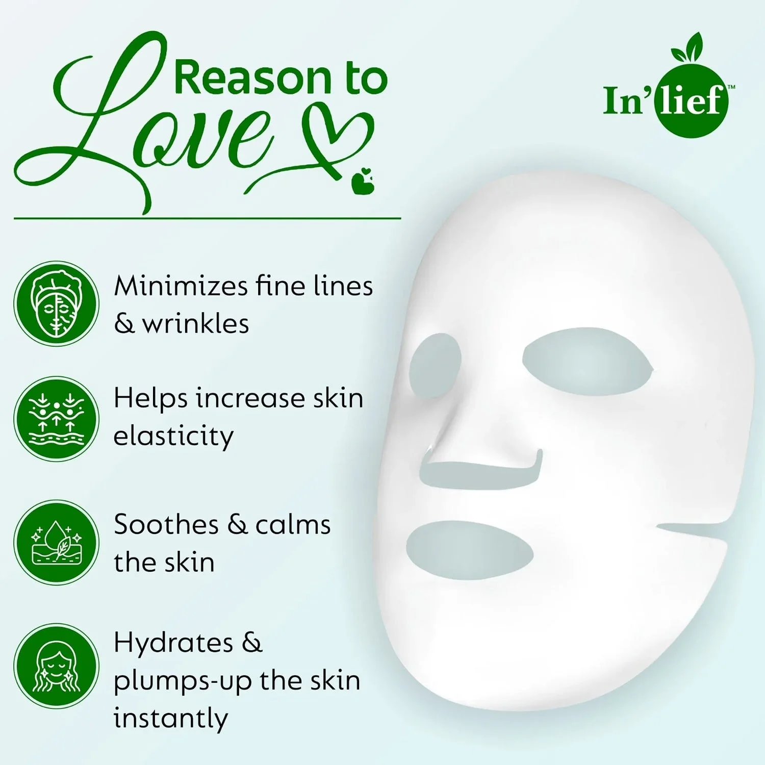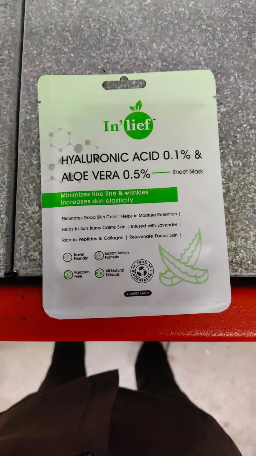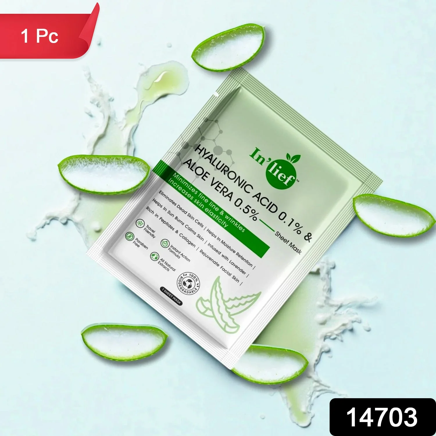 In’lief Hyaluronic Acid 0.1% & Aloe Vera 0.5% Hydrating & Rejuvenating Facial Sheet Mask – Moisture Retention, Fine Line Reduction & Skin Elasticity Boosting Mask - 1Pcs