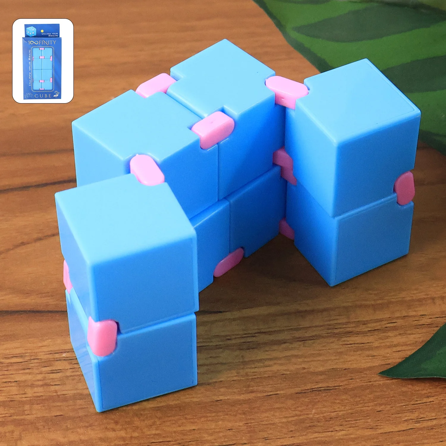 infinity cube, fidget toy, stress relief cube,hand exercise cube, desk toy, sensory toy, cube fidget toy,classroom toy,brain development toy, school time pass toy,blue pink infinity cube, foldable fidget cube, flip cube toy, mini puzzle toy