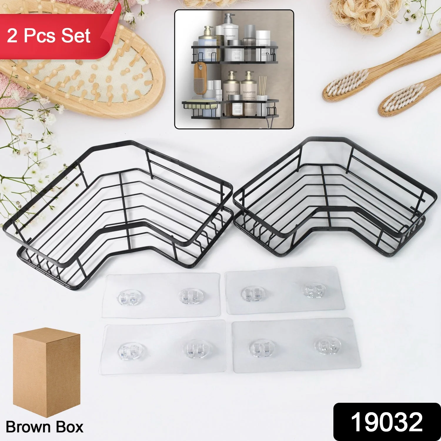 Iron Coating Self-Adhesive Corner Shelf Organizer For Bathroom (2 Pc)