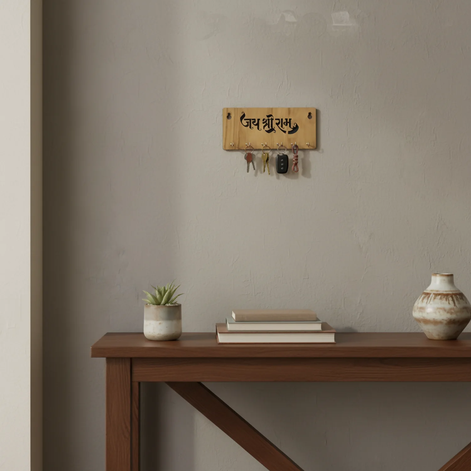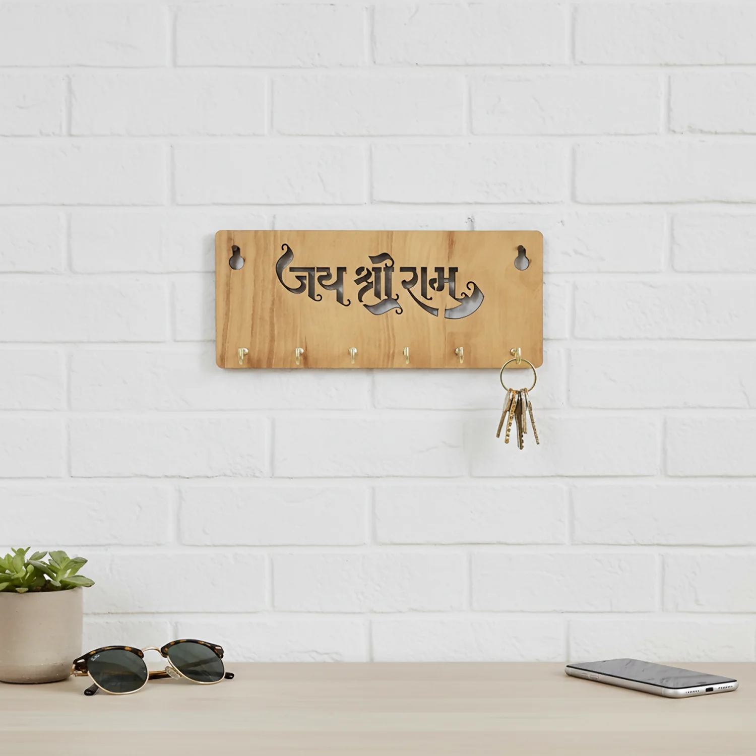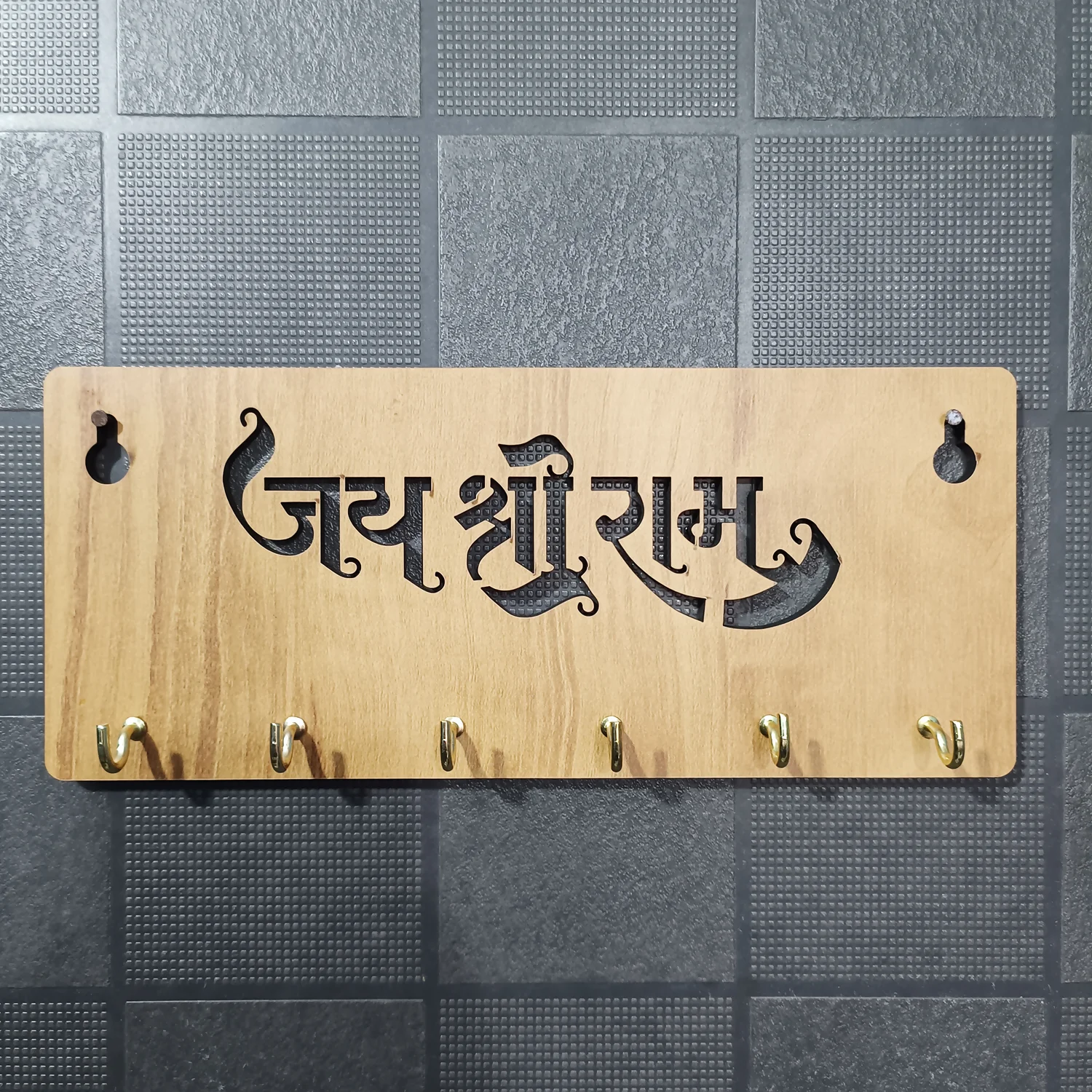 The elegant Hindi typography of “जय श्री राम” adds a powerful yet serene presence, making it ideal for entryways, living rooms, pooja corners, hallways, or near the main door. Designed with 6 durable metal hooks, it offers ample space for house keys, car keys, keychains, and small accessories, keeping your essentials neatly arranged and easy to access.