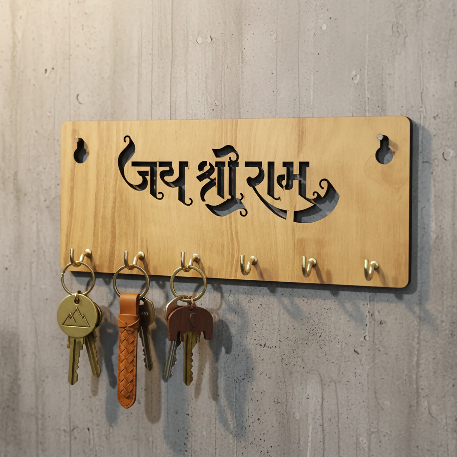 With its clean rectangular form and laser-cut lettering, this key holder complements modern, traditional, and minimal Indian interiors alike. Easy to install and built for daily use, it also makes a meaningful gift for Ram devotees, perfect for Diwali, Ram Navami, Griha Pravesh, or housewarming occasions.