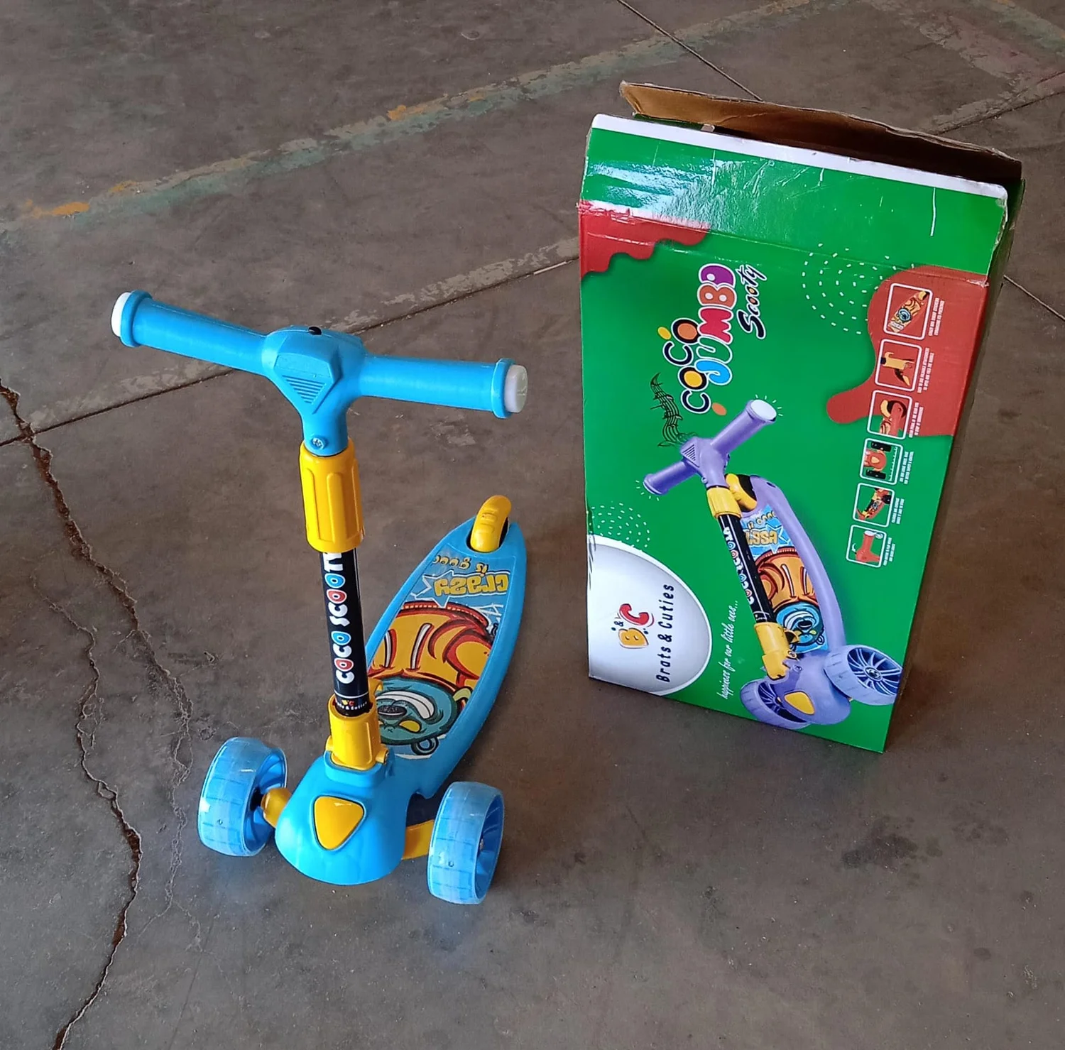 kick scooter, 3-wheel scooter, kids ride-on toy, push scooter,self-balancing scooter,children's scooter,birthday gift for kids, park scooter,blue color scooter,fun design scooter, adjustable handle scooter